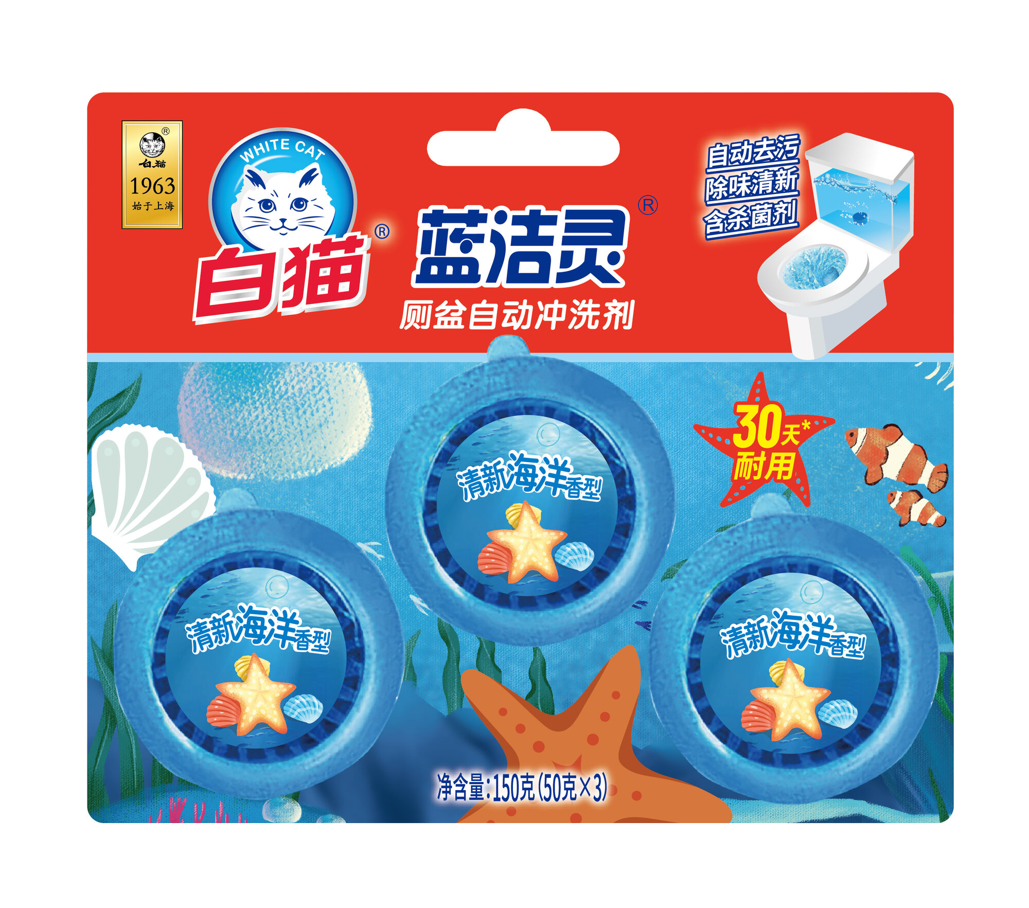 Купить Очиститель унитаза Baimao Ланьцзелин, антибактериальный, 3шт