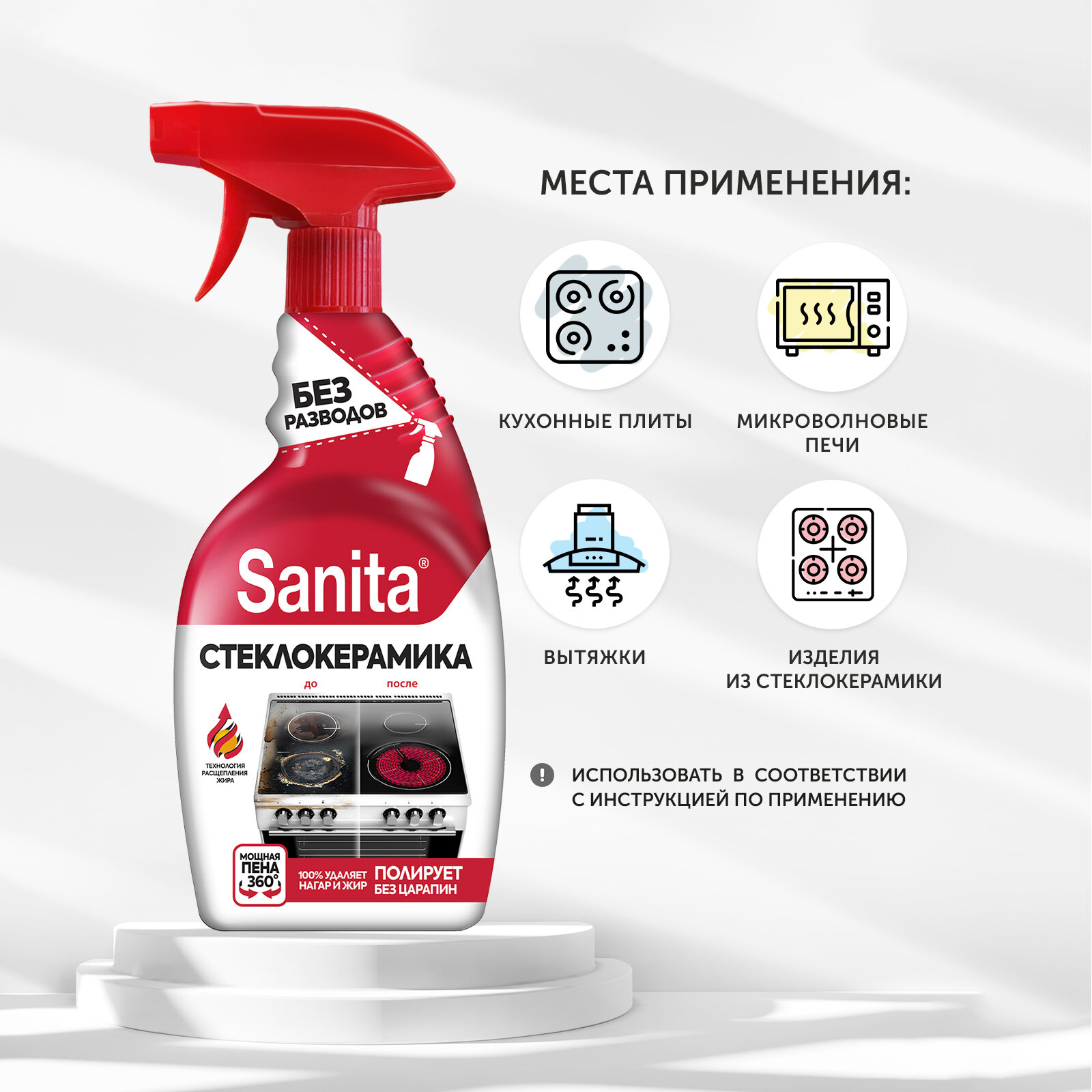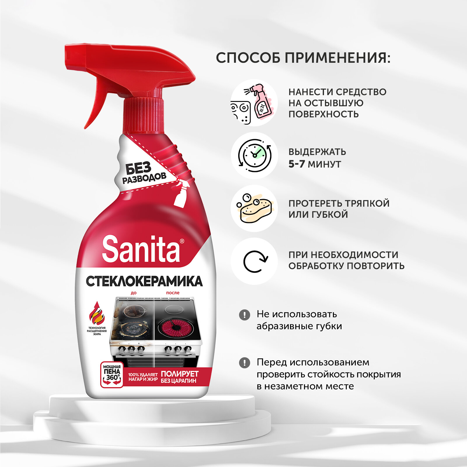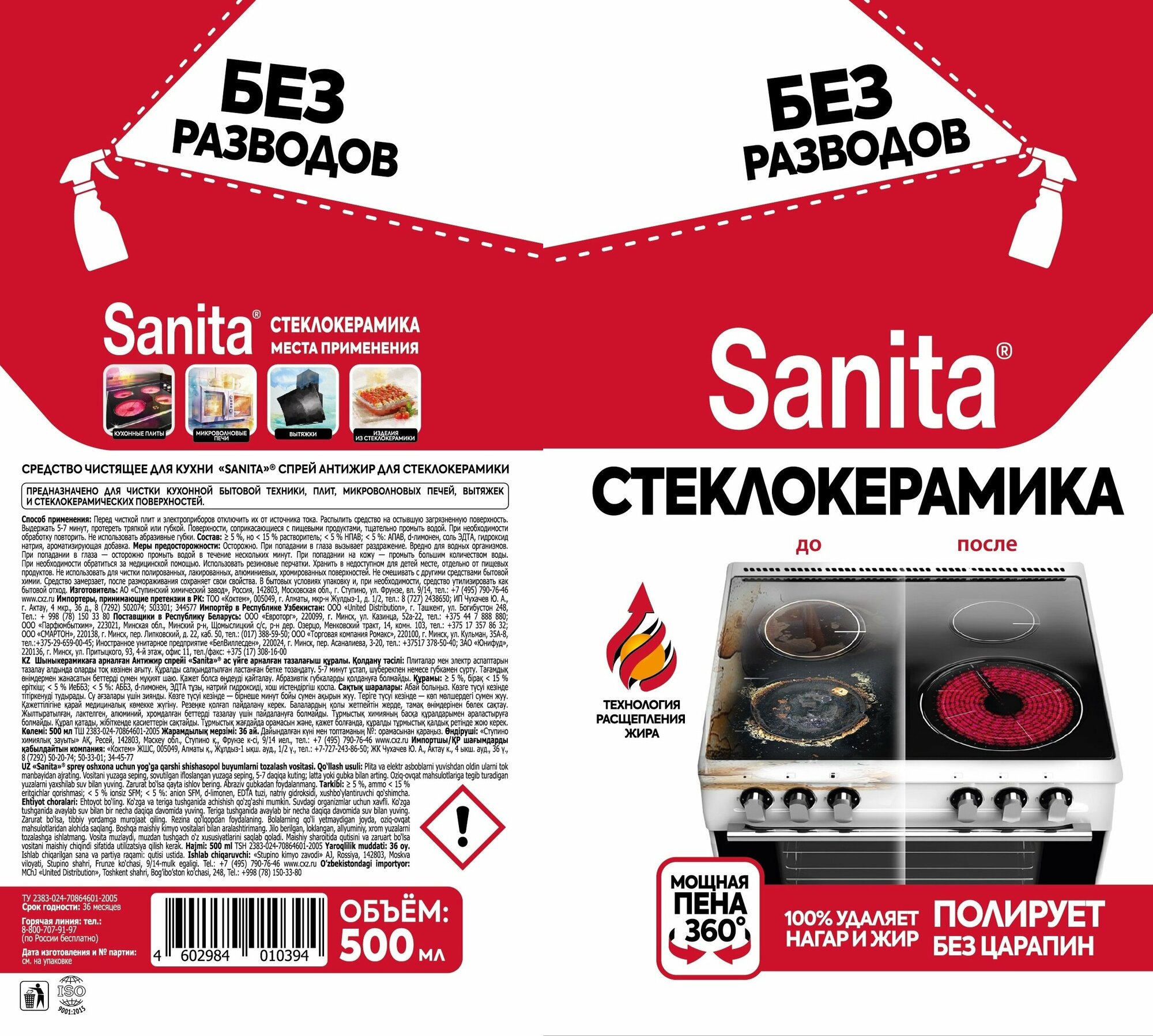 Sanita Набор: Спрей очиститель Антижир для стеклокерамики 500 мл ( 2 шт ) интересное: