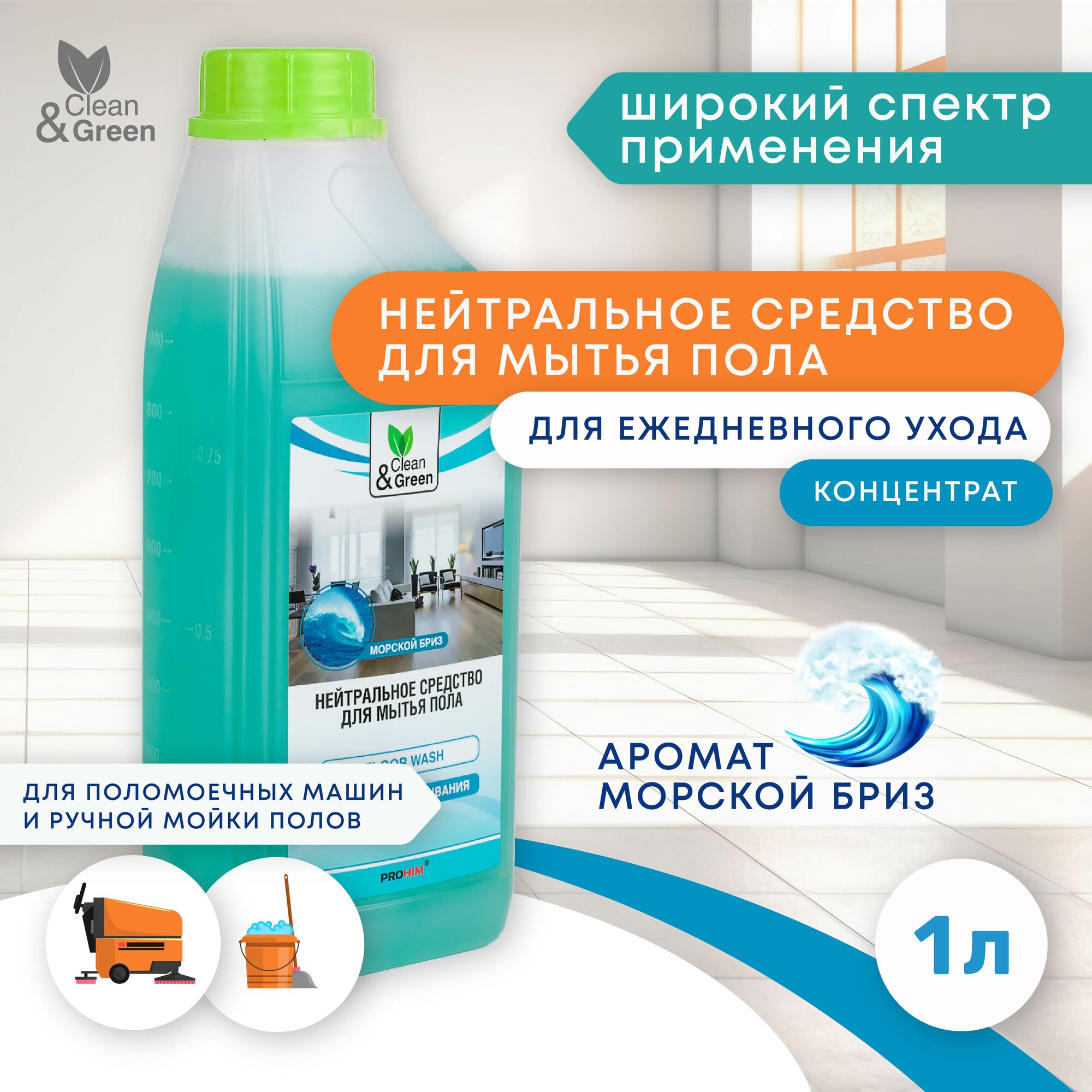 Нейтральное средство для мытья пола 1 л Clean&Green CG8030 интересное: