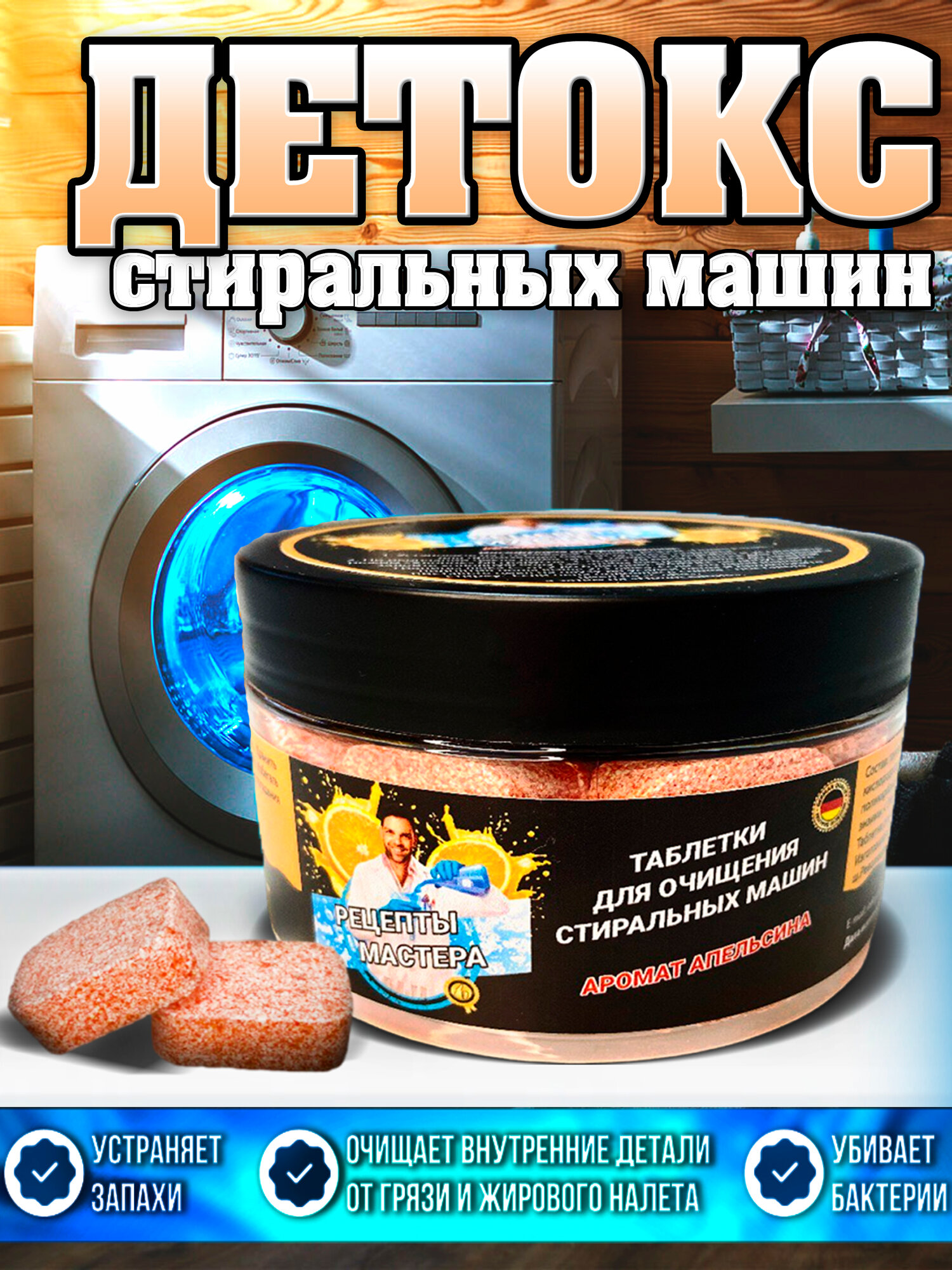 Таблетки для очистки стиральной машины 12шт с ароматом апельсина интересное: