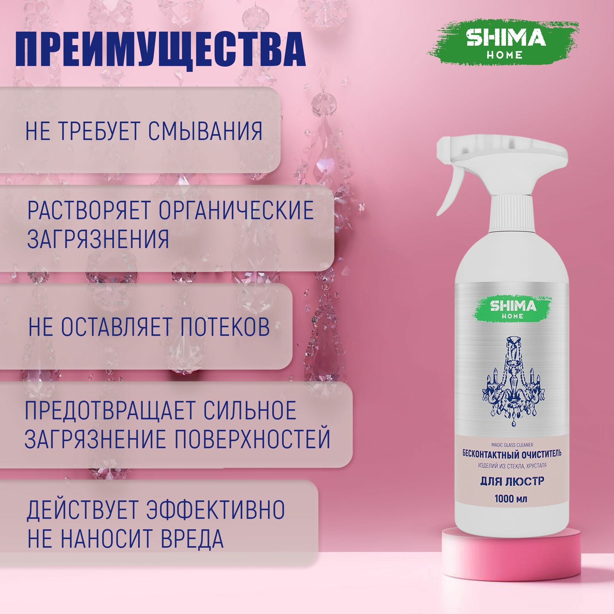 Чистящее средство для мытья люстр бесконтактное MAGIC GLASS CLEANER 1 литр интересное: