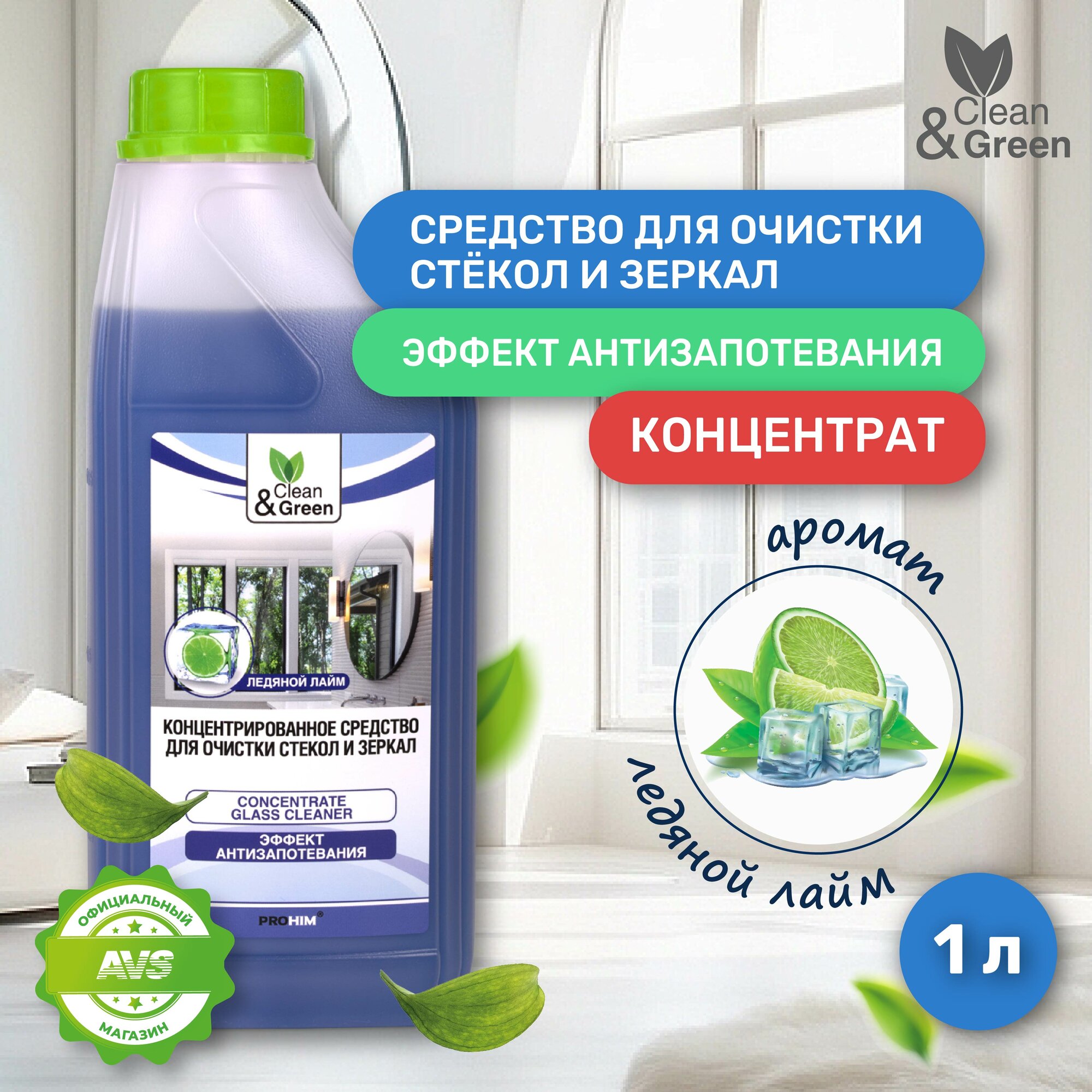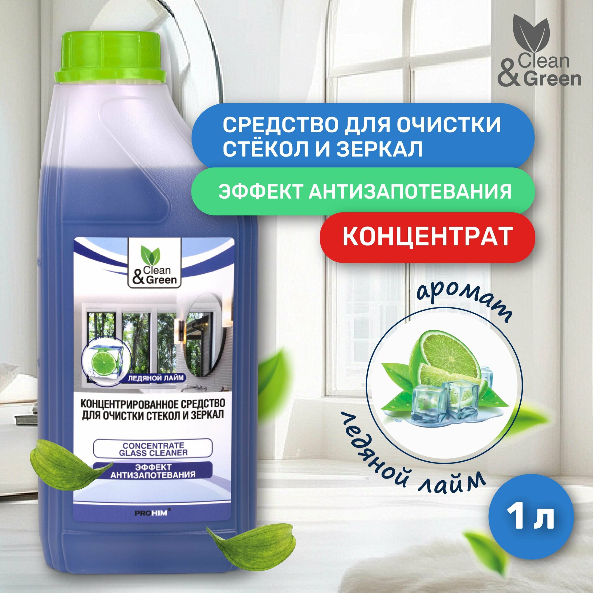Концентрированное средство для очистки стекол и зеркал 1 л Clean&Green CG8035 интересное: