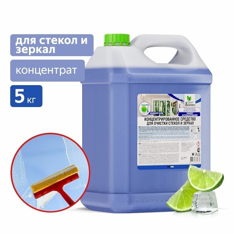 Концентрированное средство для очистки стекол и зеркал 5 кг. Clean&Green CG8036 интересное: