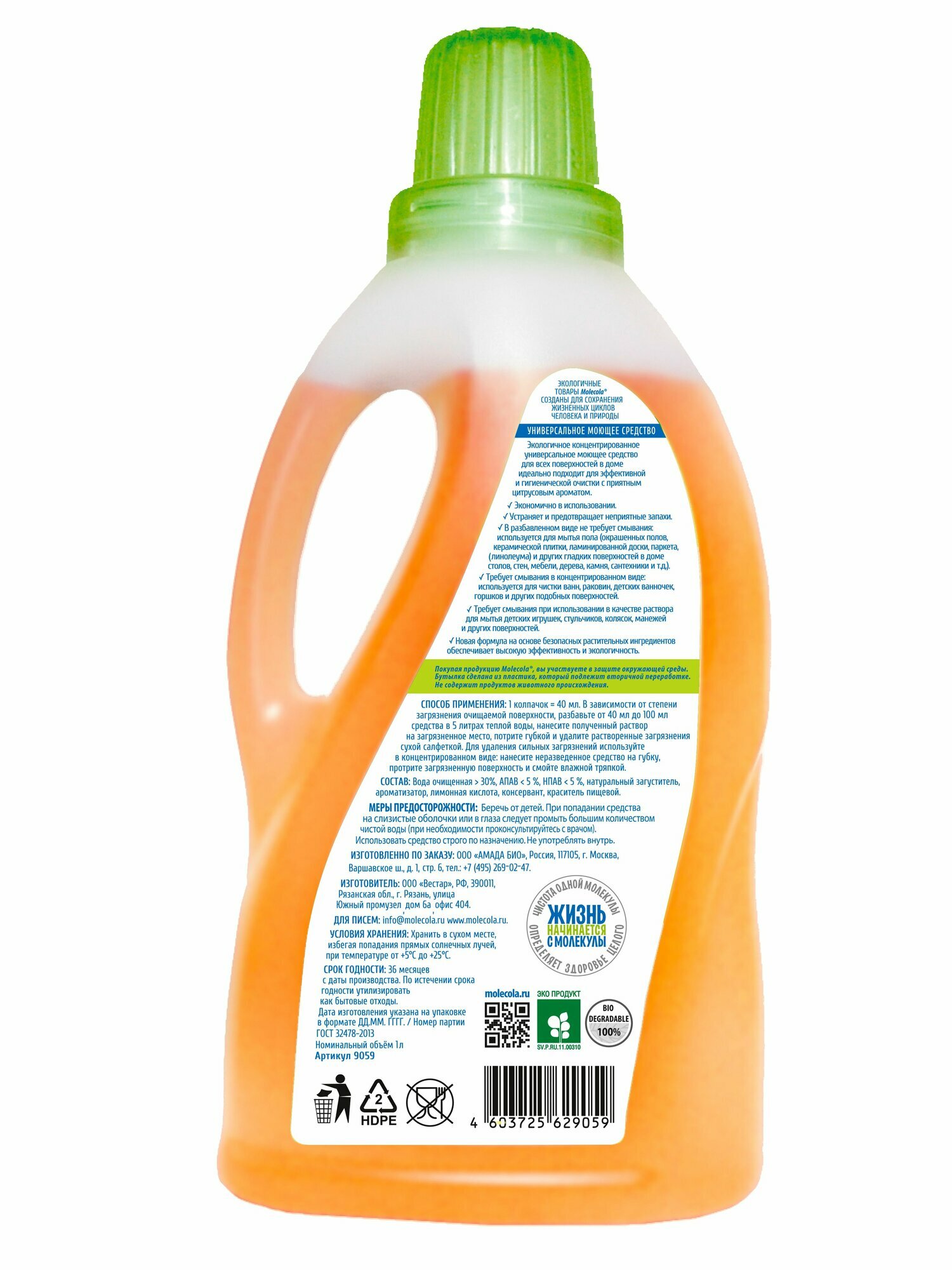 Купить Универсальное моющее средство для всех поверхностей Molecola "Сила цитруса" экологичное 1 литр