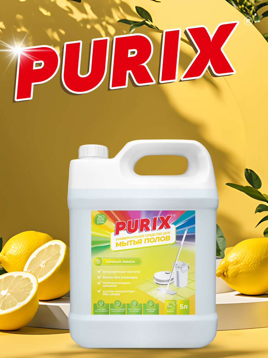 Купить Средство для мытья пола Purix Сочный лимон 5 л универсальное средство для моющих пылесосов и других поверхностей