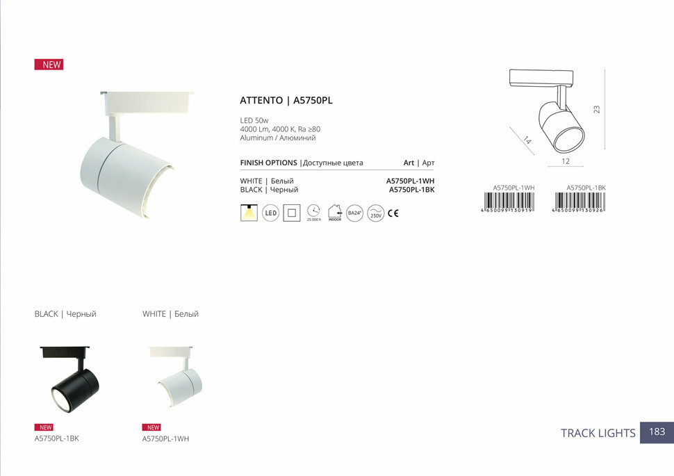 Трековые светильники Arte Lamp Attento A5750PL-1WH