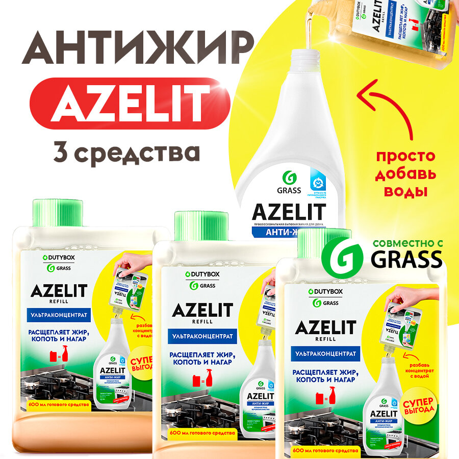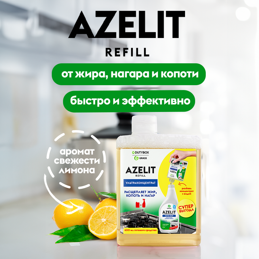 Универсальное чистящее средство для кухни Azelit ReRefill DUTYBOX 1800мл (3шт. концентрата по 200мл), средство-жироудалитель Азелит антижир интересное: