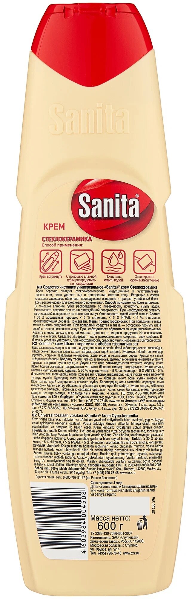 Купить Чистящий крем Sanita, для стеклокерамики, антибактериальный, 500мл