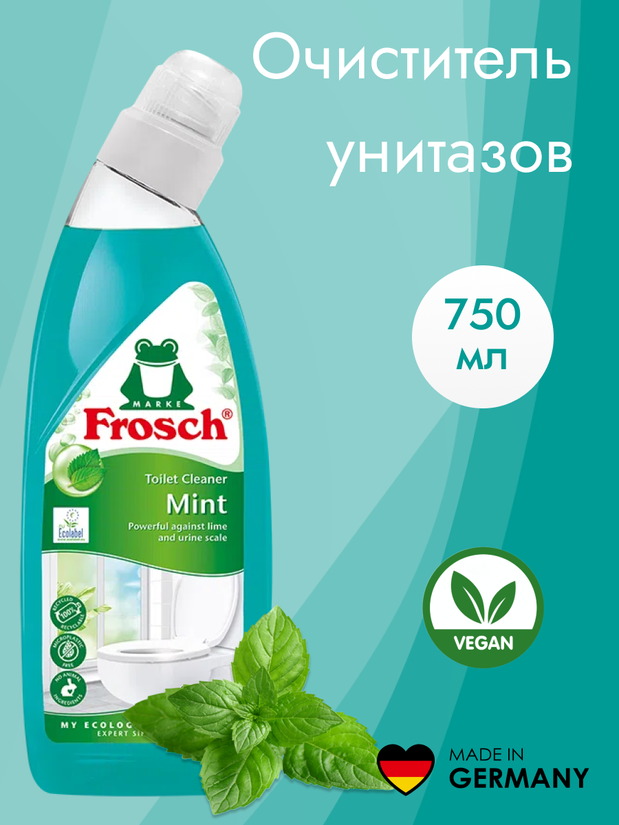 Купить Очиститель для унитазов Frosch Мята, биоразлагаемый, безопасный для септиков, 750 мл