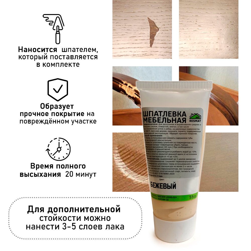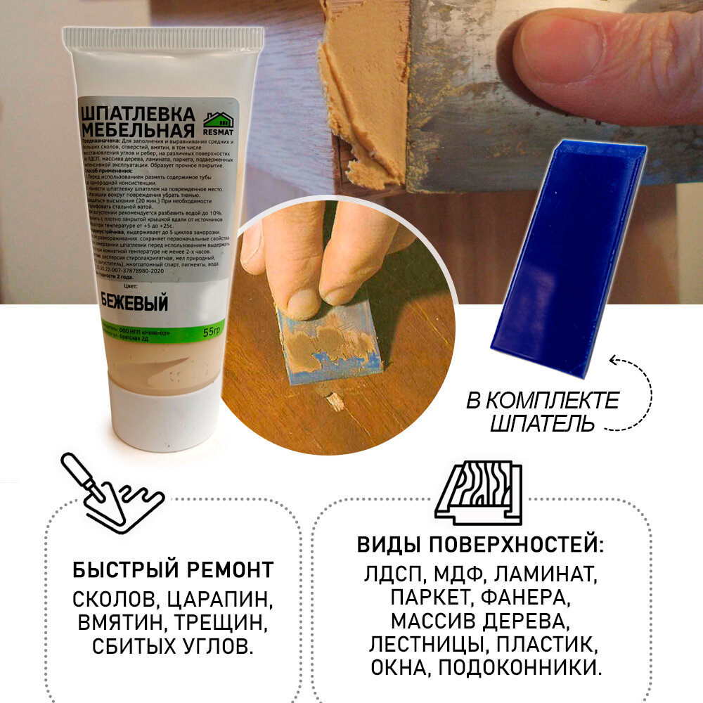 СохранитьШпатлевка мебельная Resmat БЕЗ блистера, ремонт мебели ламината - цвет Бежевый интересное: