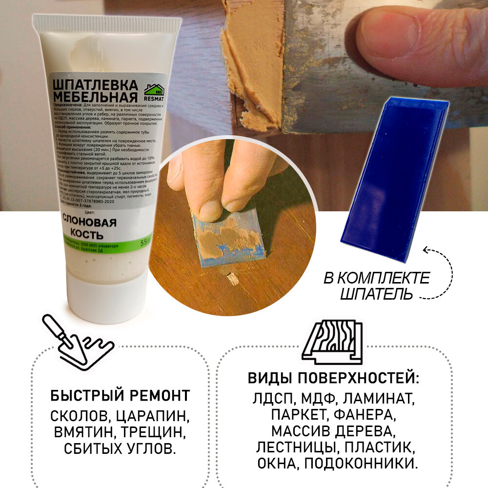 СохранитьШпатлевка мебельная Resmat БЕЗ блистера, ремонт мебели ламината - цвет Слоновая Кость интересное: