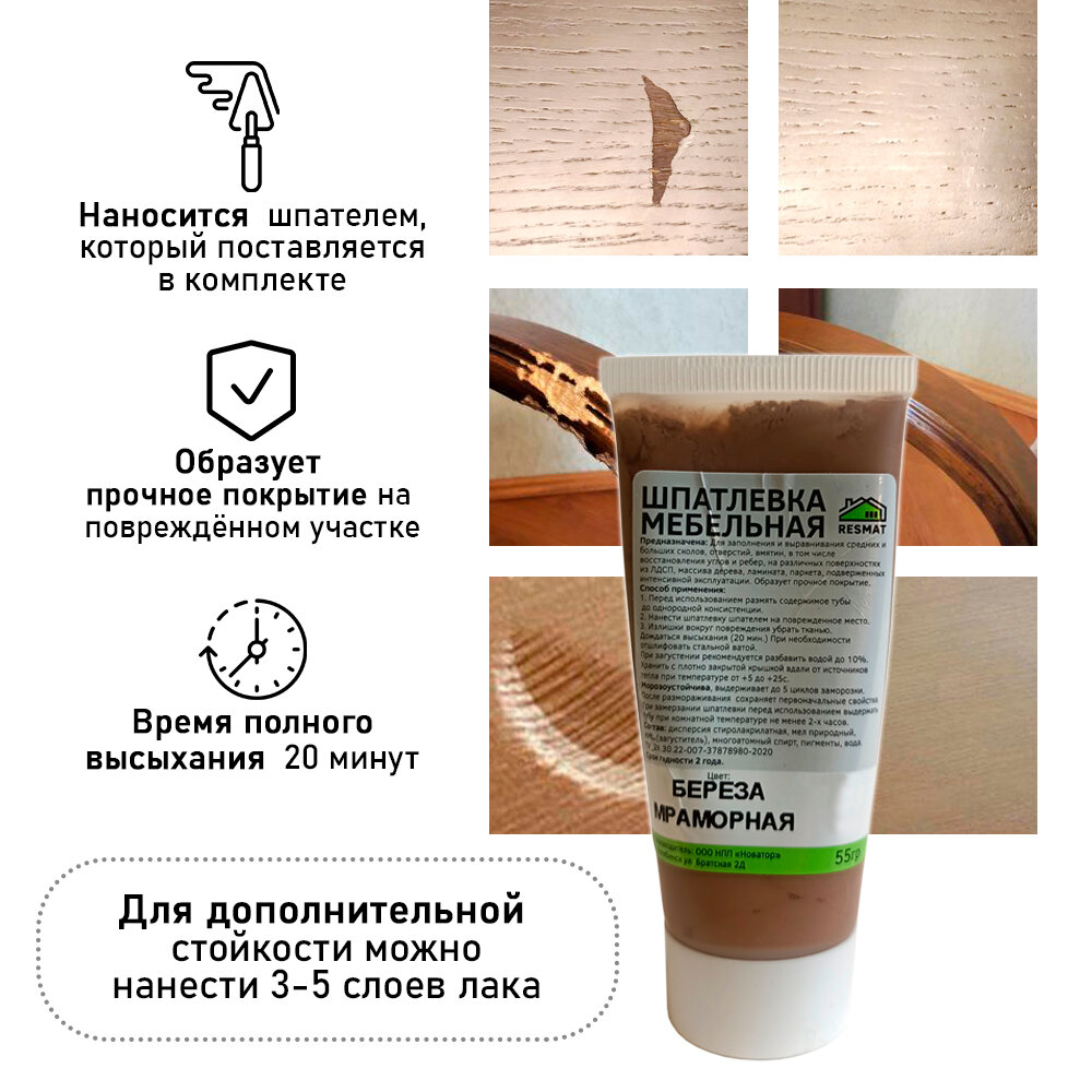СохранитьШпатлевка мебельная Resmat БЕЗ блистера, ремонт мебели ламината - цвет Береза Мраморная интересное: