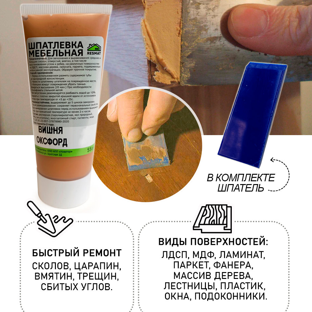 СохранитьШпатлевка мебельная Resmat БЕЗ блистера, ремонт мебели ламината - цвет Вишня Оксфорд интересное: