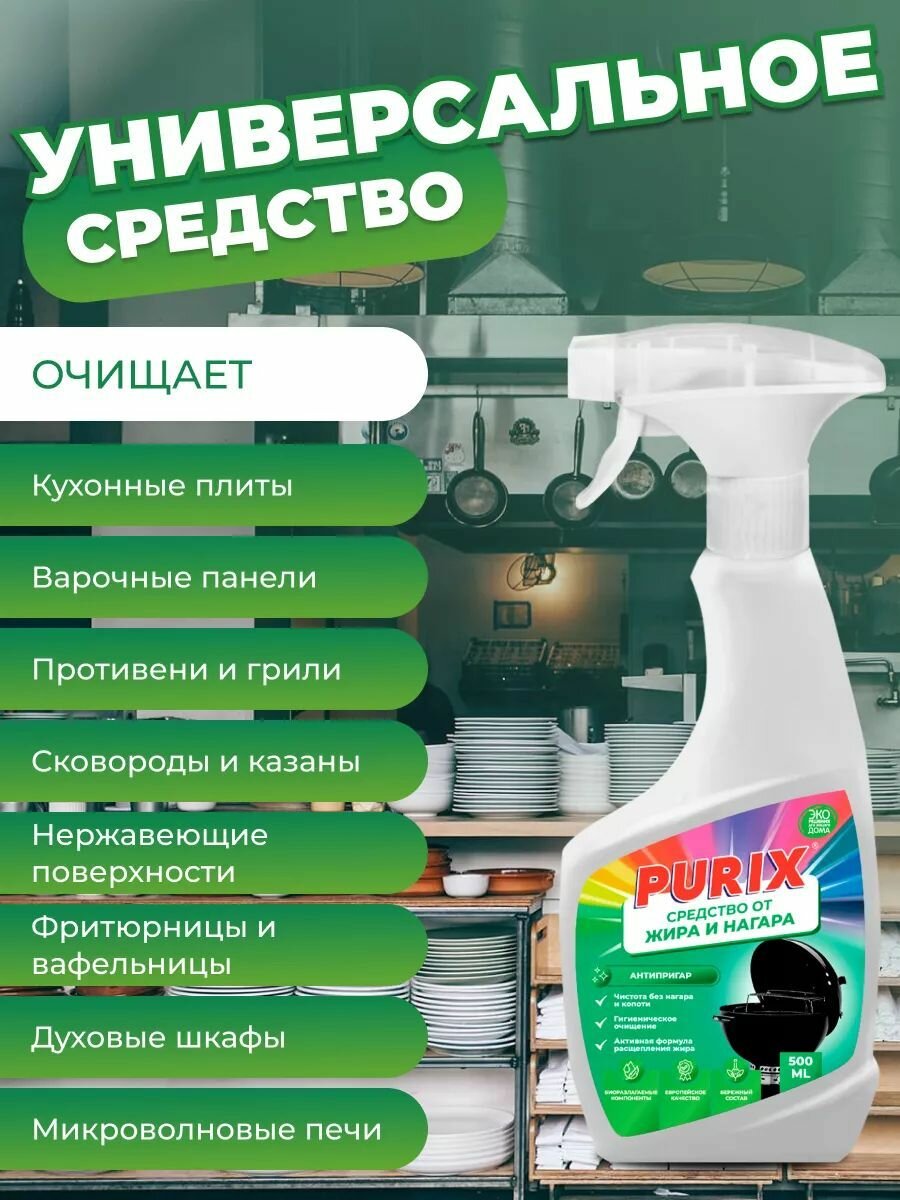 Чистящее средство от жира и нагара Антипригар Purix для гриля, варочной плиты и вытяжки 500мл интересное: