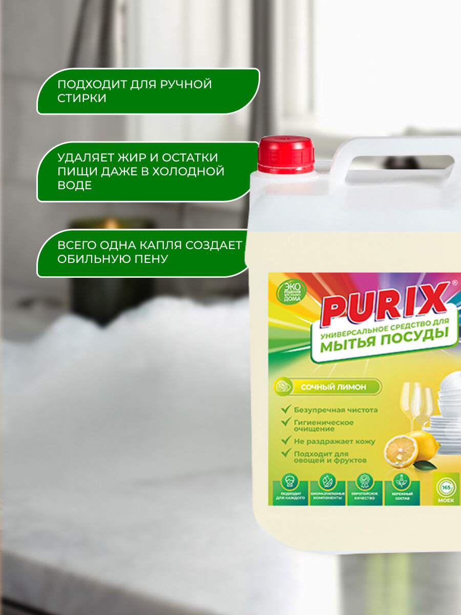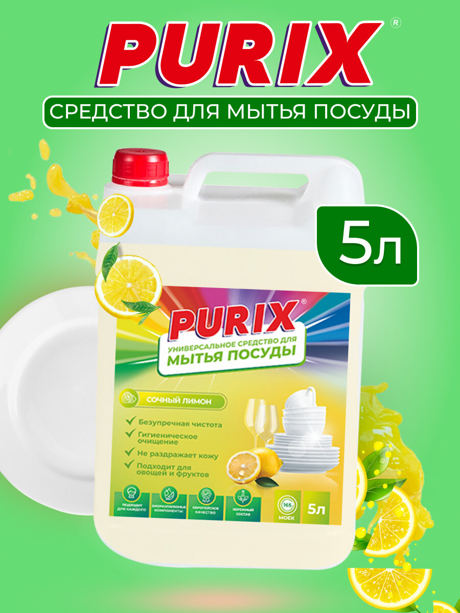 Универсальное средство для мытья посуды Purix гель Сочный лимон 5 литров интересное: