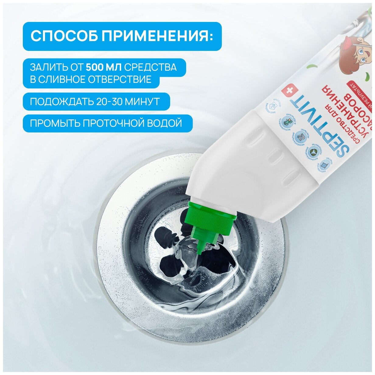 Средство для устранения засоров труб SEPTIVIT /Гель для прочистки канализации и удаления засоров 750мл интересное: