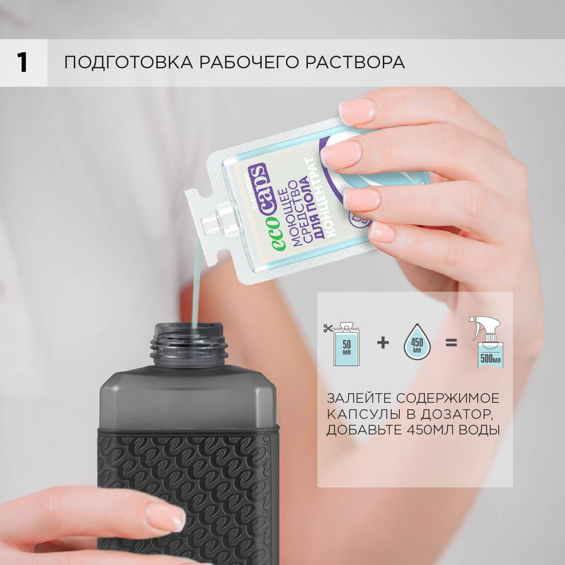 Средство для мытья пола, стен, набор для уборки дома, моющая жидкость в капсулах 2 шт и флакон белый 500мл