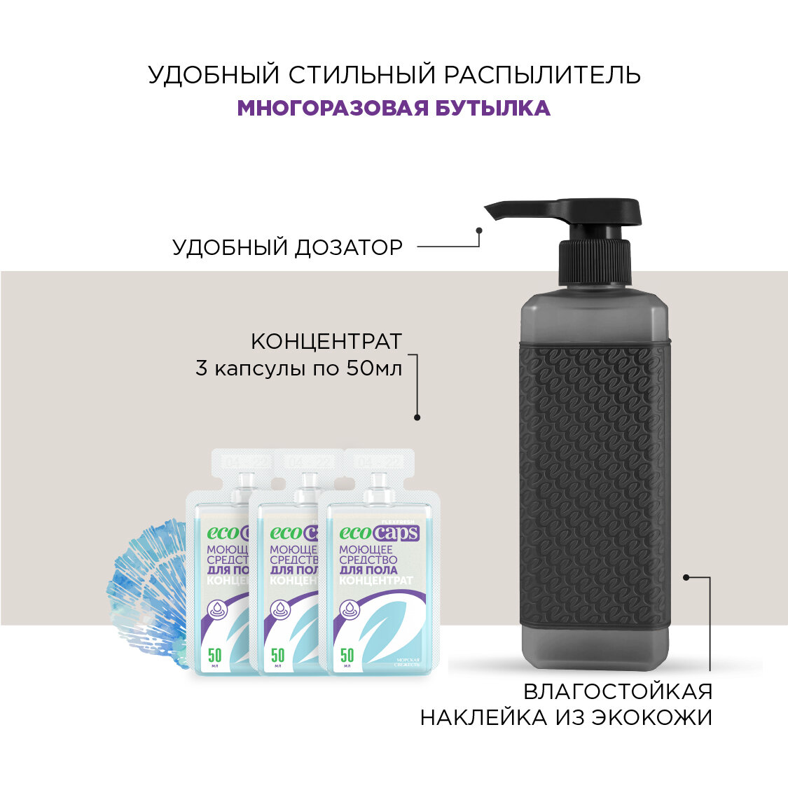 Средство для мытья пола, стен, набор для уборки дома, моющая жидкость в капсулах 3 шт и флакон черный 500мл интересное:
