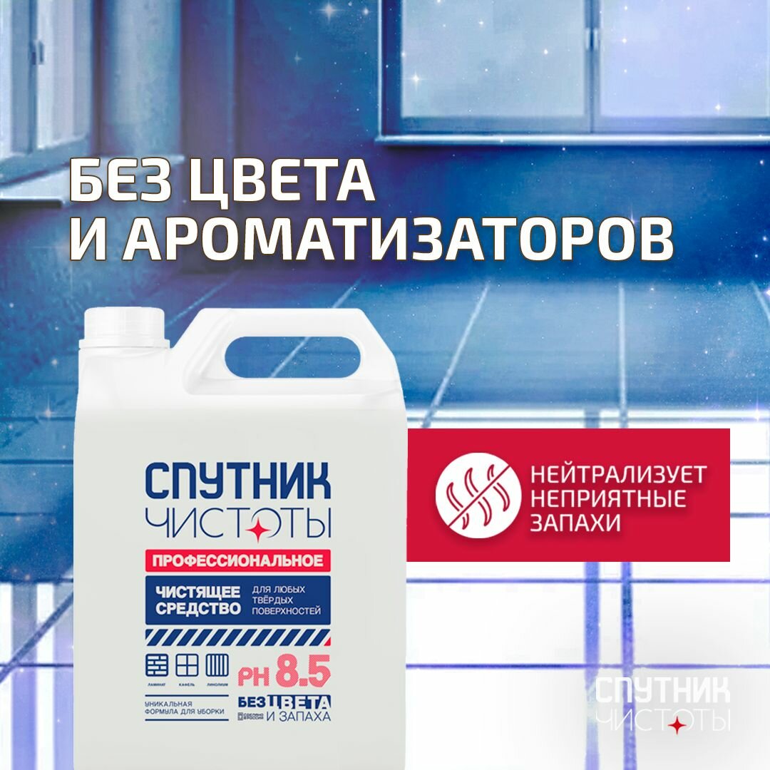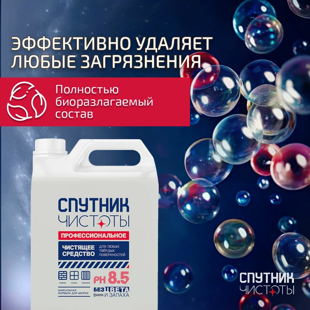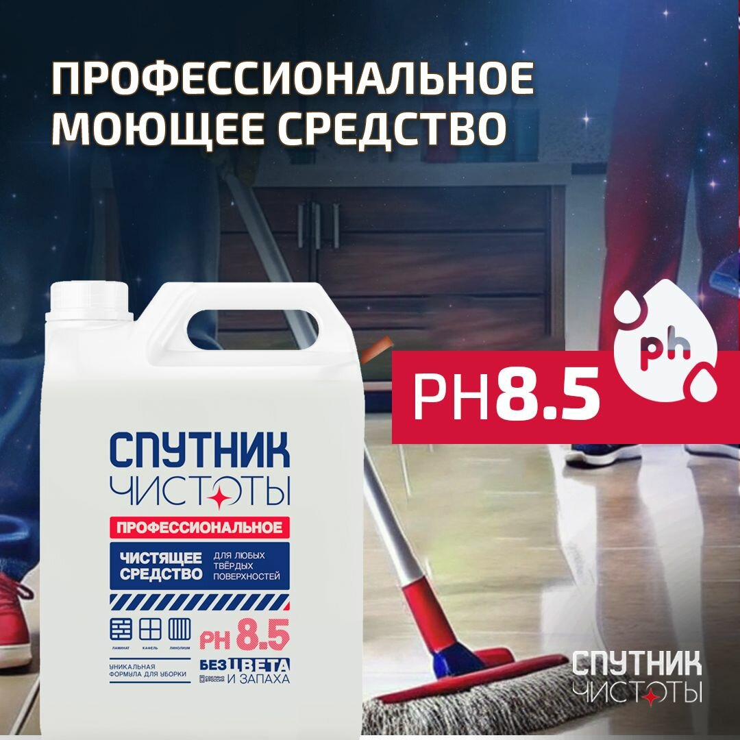 Средство для мытья пола Спутник Чистоты ПРОФ серия, универсальное средство для твердых поверхн интересное: