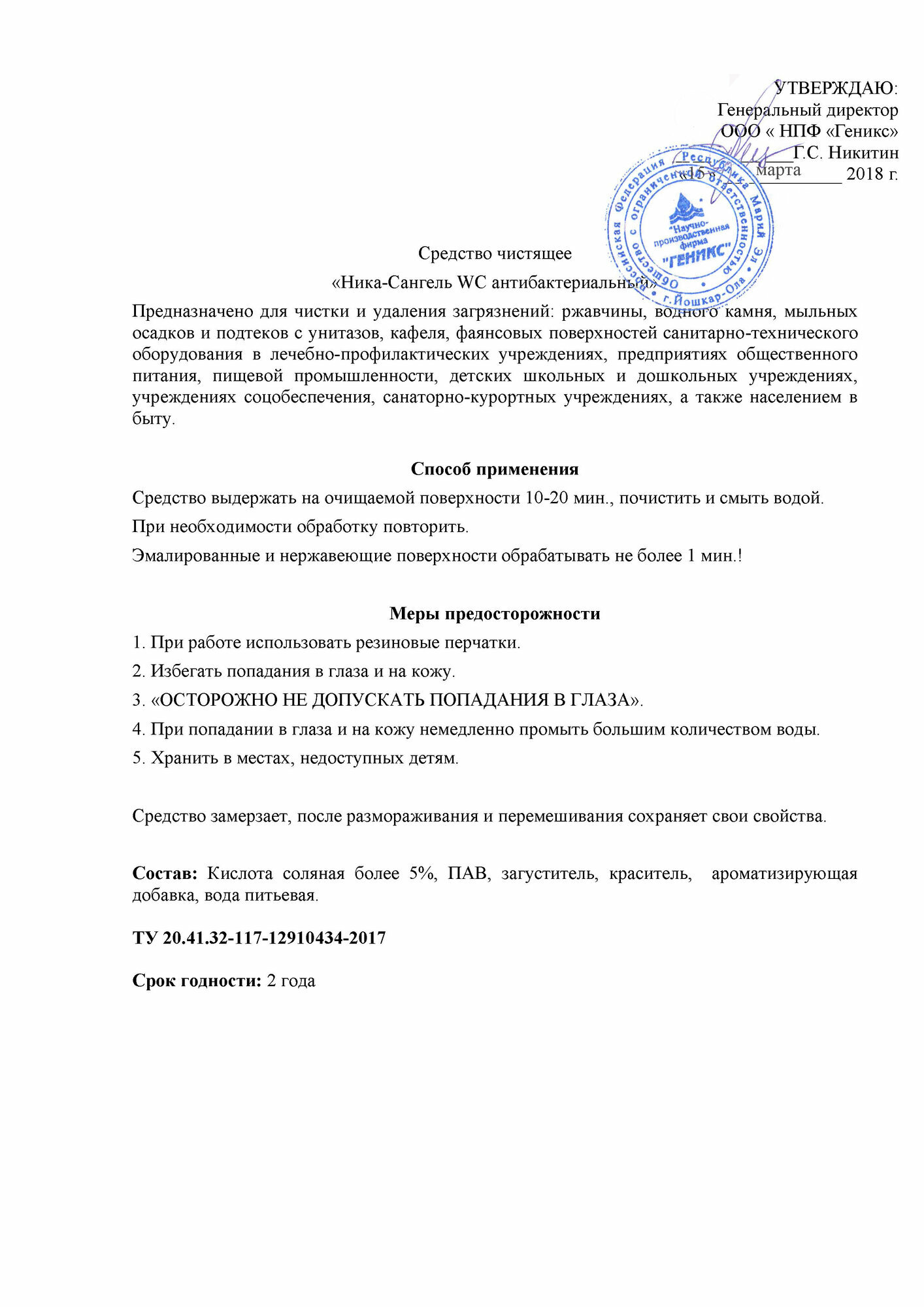 Антибактериальный гель для сантехники Ника-сангель, 750 мл 1шт интересное: