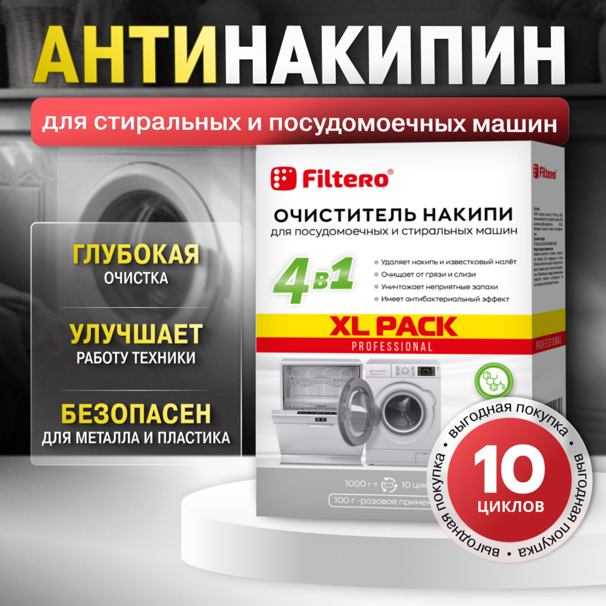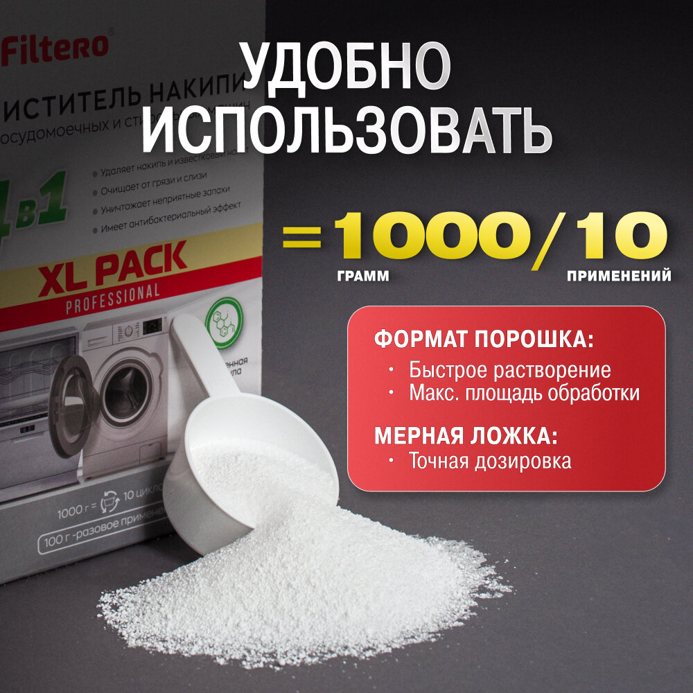 Очиститель накипи: средство для СМ и ПММ XL PACK, 1000г, Filtero интересное: