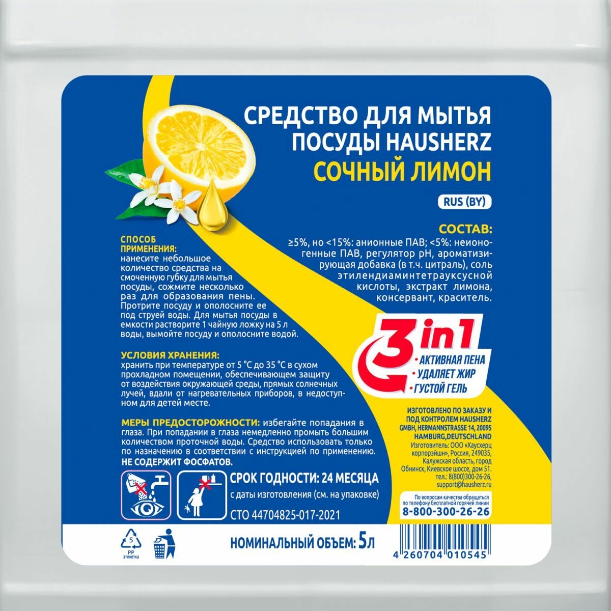 Купить HausHerz Сочный лимон средство для мытья посуды бесфосфатное 5 л