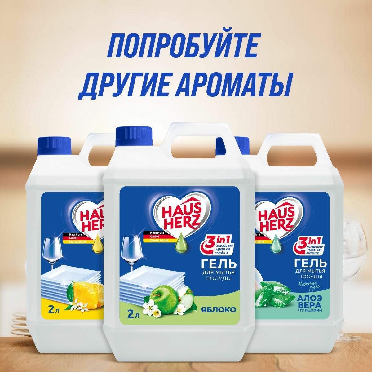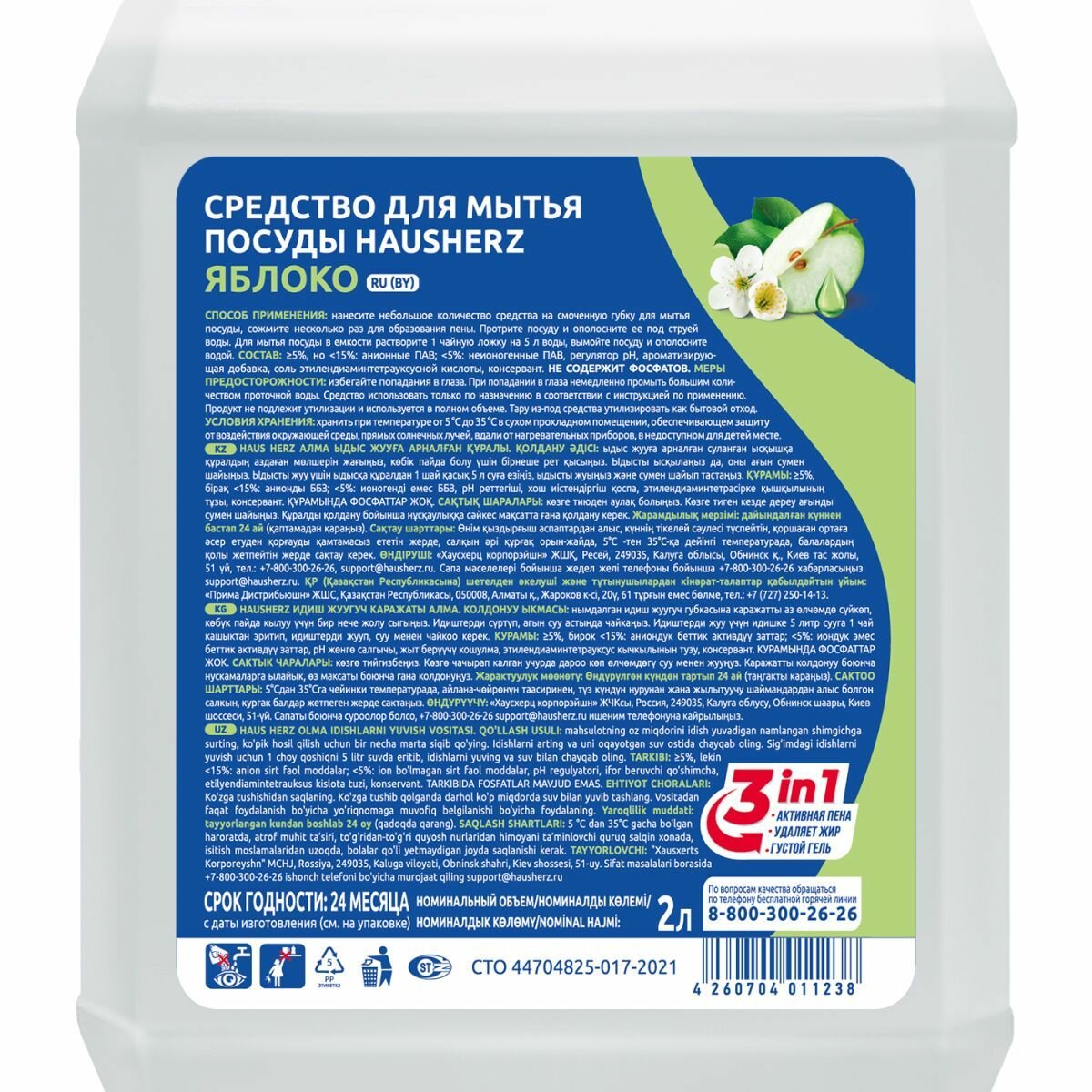 Купить Средство для мытья посуды HausHerz "Яблоко", бесфосфатное, 2 л
