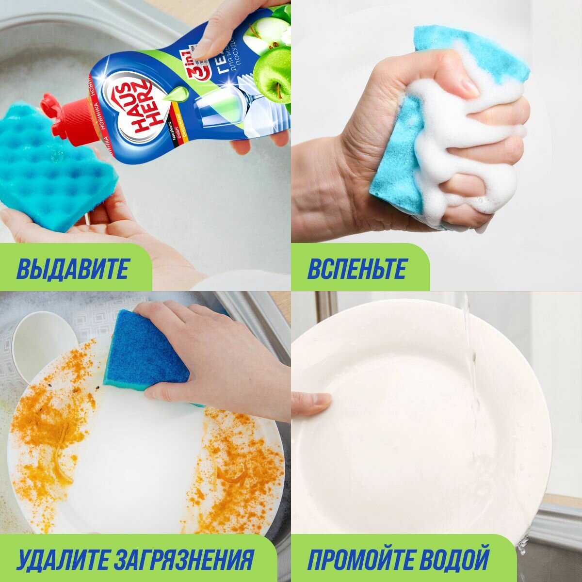 Средство для мытья посуды "HausHerz" Яблоко, 450 мл.
