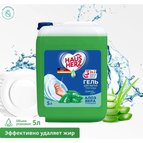 Купить Средство для мытья посуды Haus Herz Бальзам Алоэ вера и глицерин, 5 л