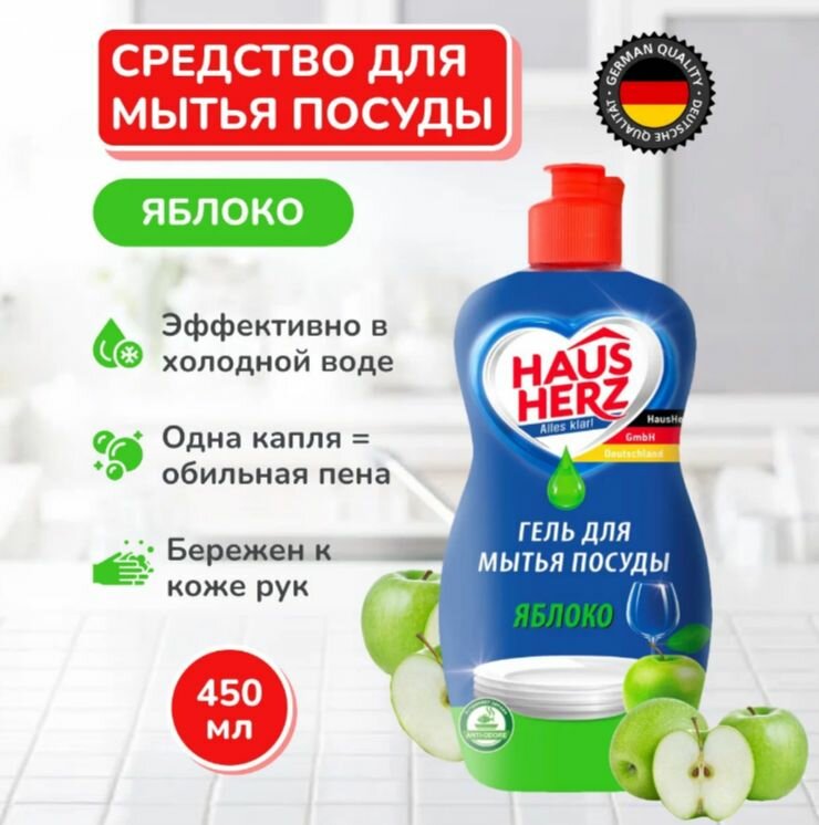 Средство для мытья посуды Haus Herz Яблоко 450 мл