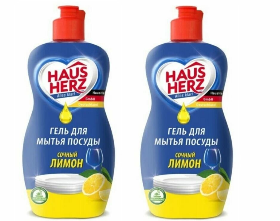 Купить Средство для мытья посуды "HausHerz" Лимон, 450 мл. 2 штуки