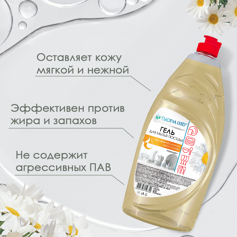 Средство для мытья посуды гель ТЫСЯЧА озер Ромашка, 900 мл интересное: