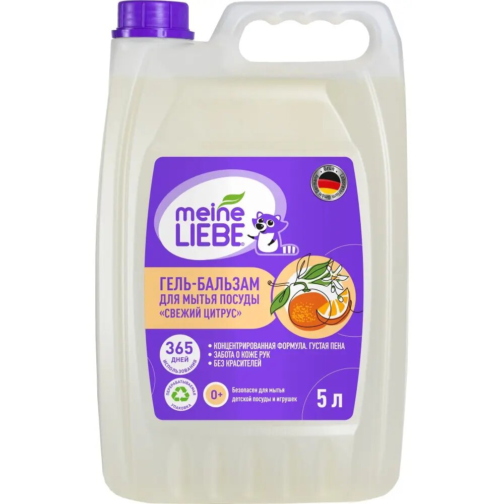 Гель-бальзам для мытья посуды "Свежий цитрус" Meine Liebe, концентрат, 5 л интересное: