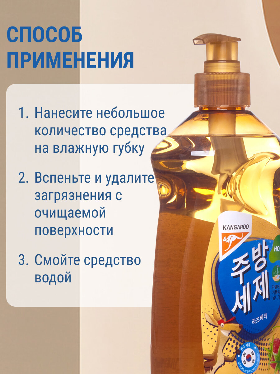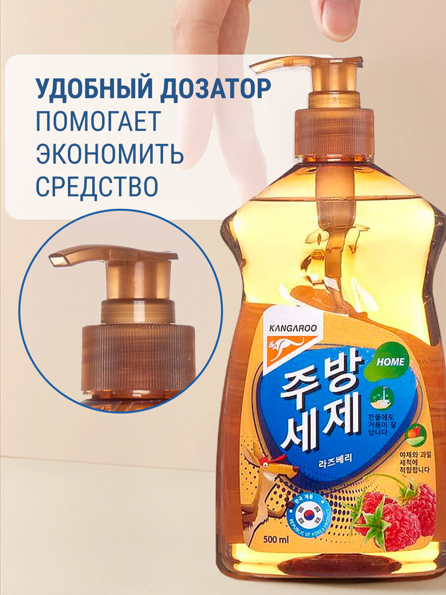 Купить Корейское моющее средство для посуды Kangaroo Home с ароматом малины 500 мл, гель для мытья фруктов, овощей и детской посуды