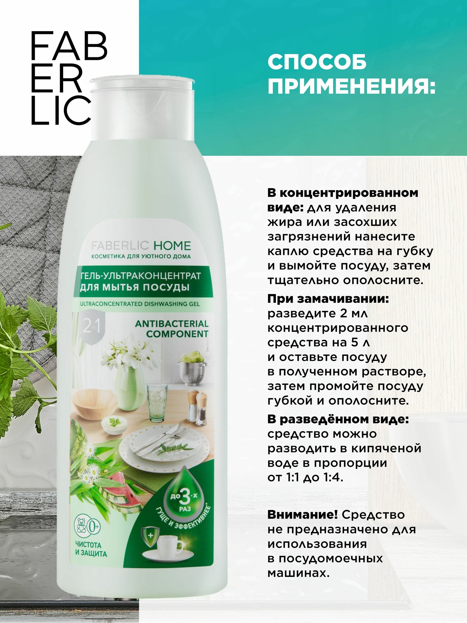 Faberlic Гель для мытья посуды, ультраконцентрат 2 в 1 "Чистота и защита" Faberlic Home, средство для мытья посуды Фаберлик, 500 мл интересное: