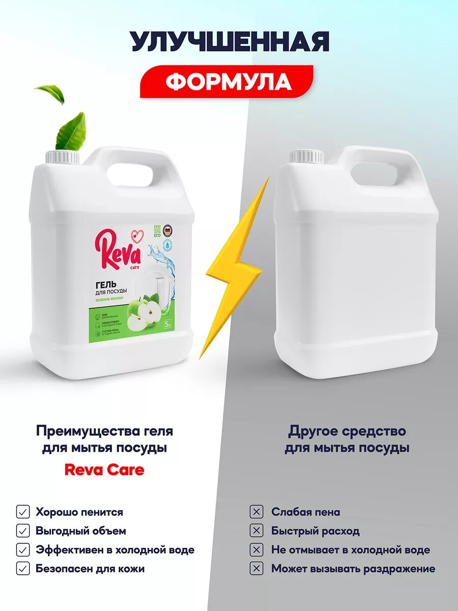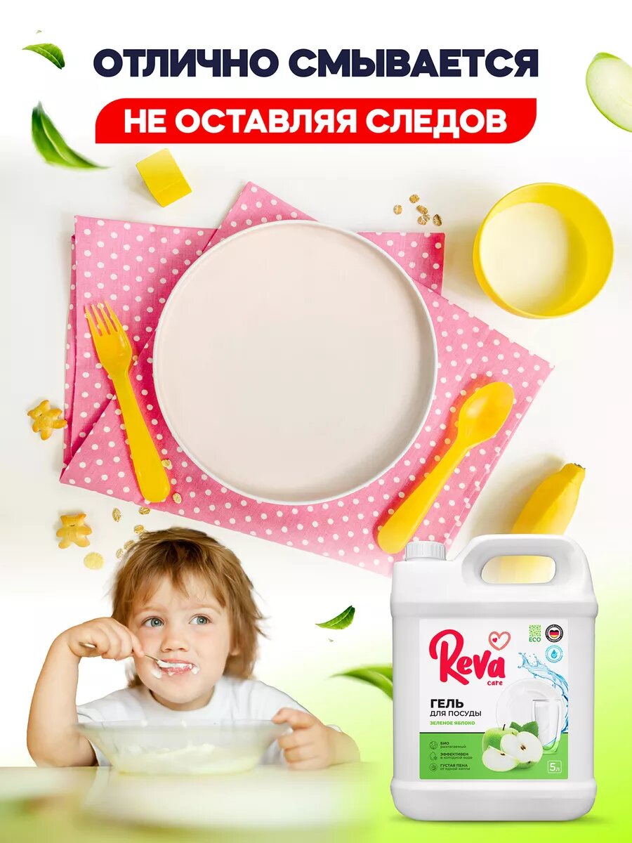 Средство для мытья посуды Reva Care антибактериальное, гипоаллергенное, густое с ароматом Яблока 5л интересное: