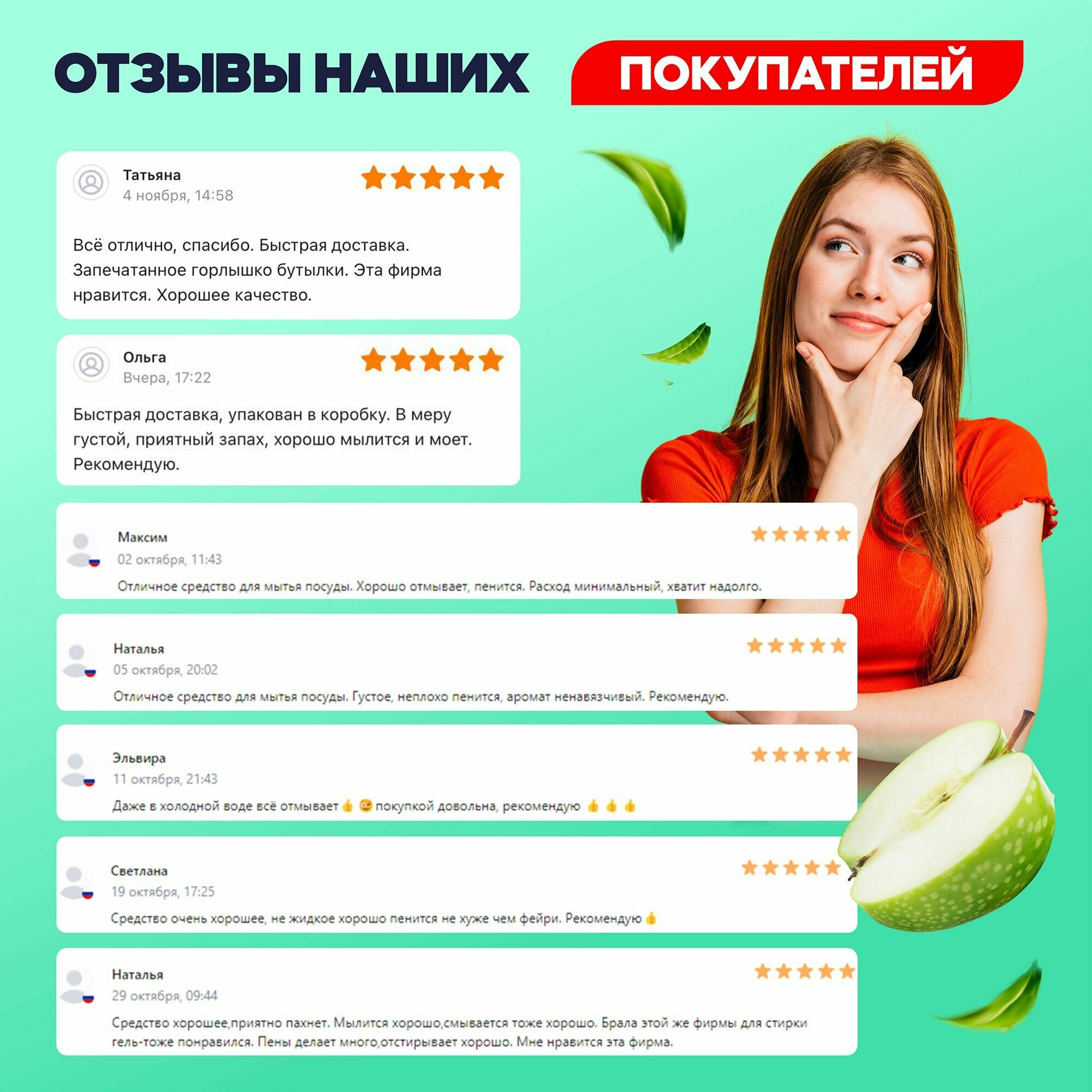 Средство для мытья посуды Reva Care антибактериальное, гипоаллергенное, густое с ароматом Яблока 5л