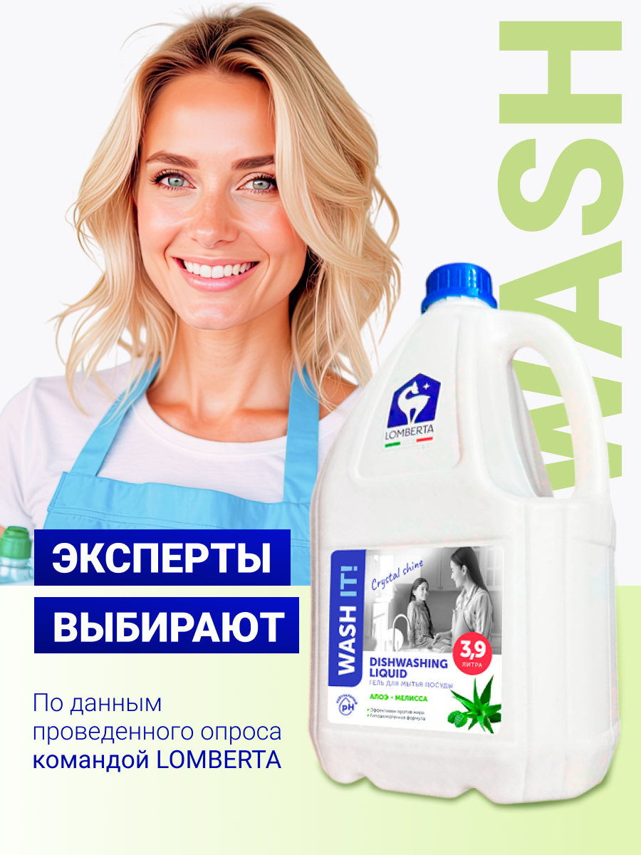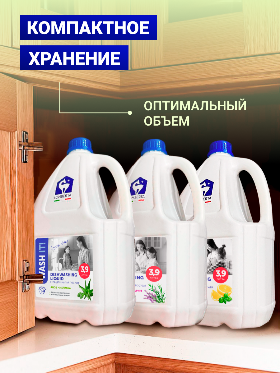 Моющее средство для посуды Lomberta, 3.9 литров / концентрированный гель с ароматом "Алоэ и мелисса" интересное: