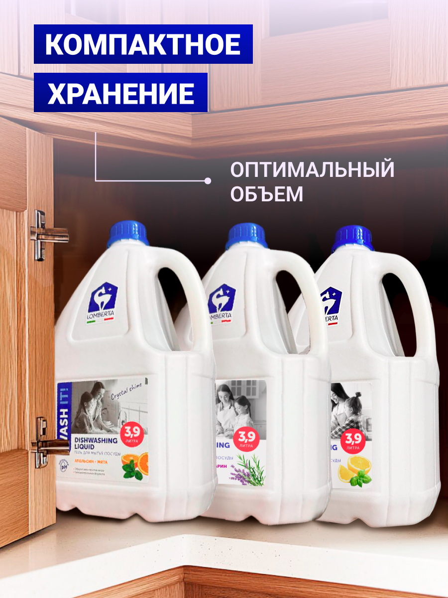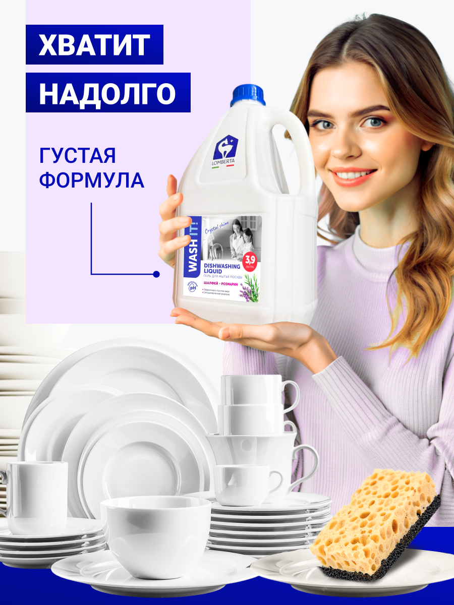 Моющее средство для посуды Lomberta, 3.9 литров / концентрированный гель с ароматом "Шалфей и розмарин" интересное: