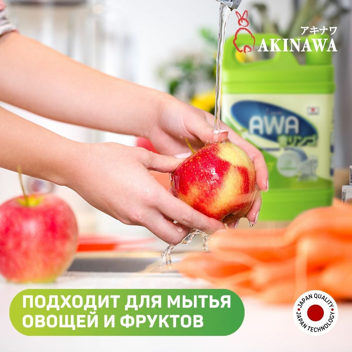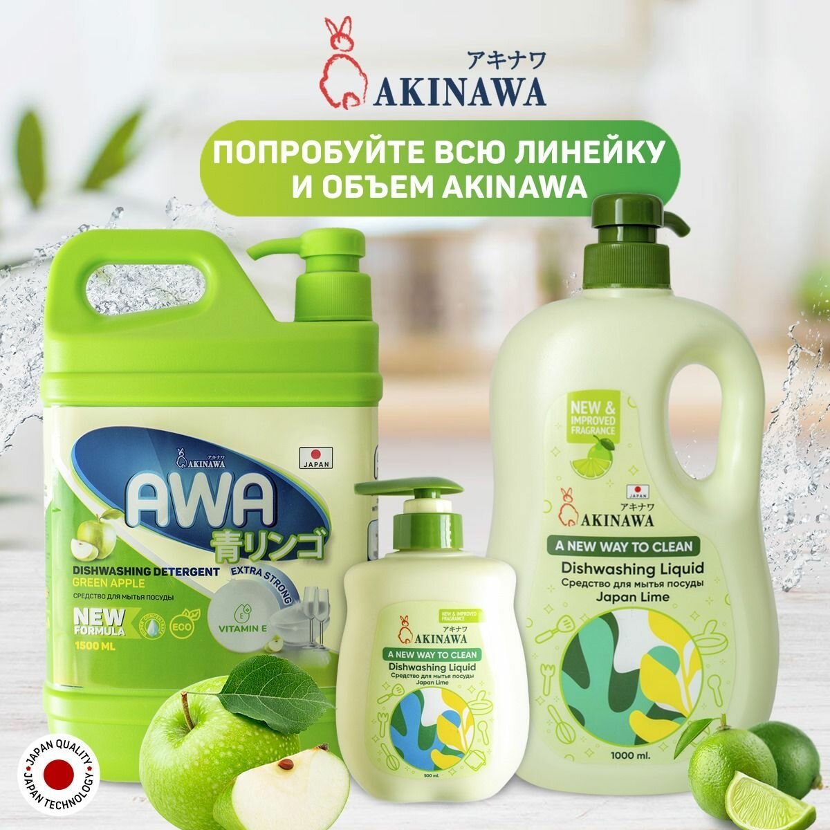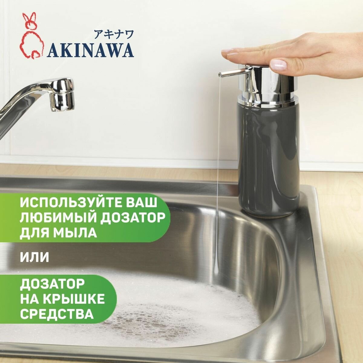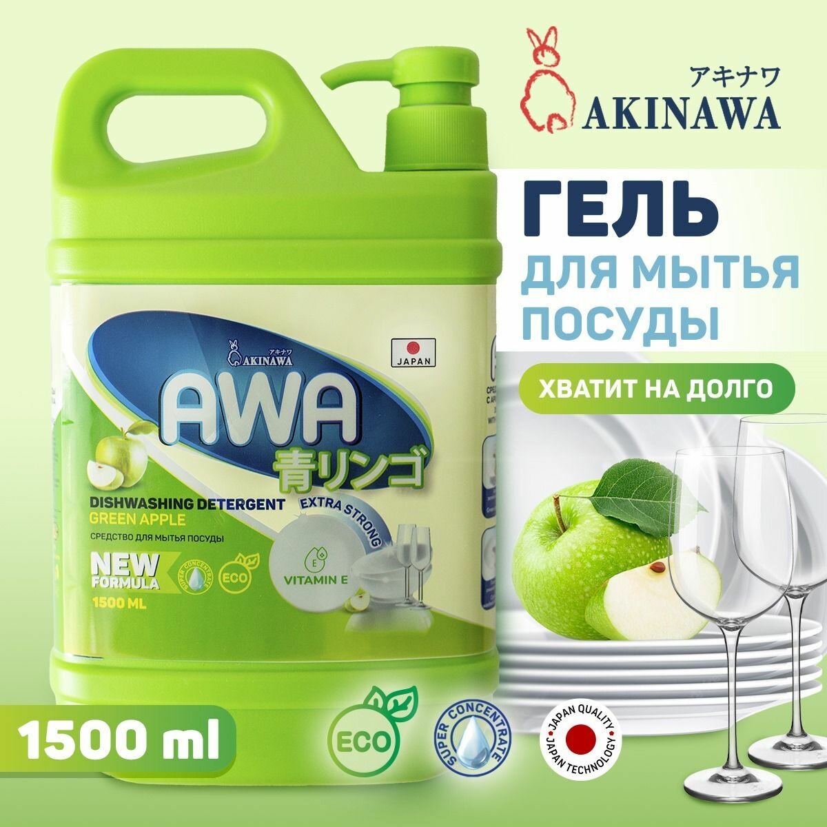 Гель для посуды AKINAWA "Зеленое яблоко", гипоаллергенный, с дозатором, 1.5л интересное: