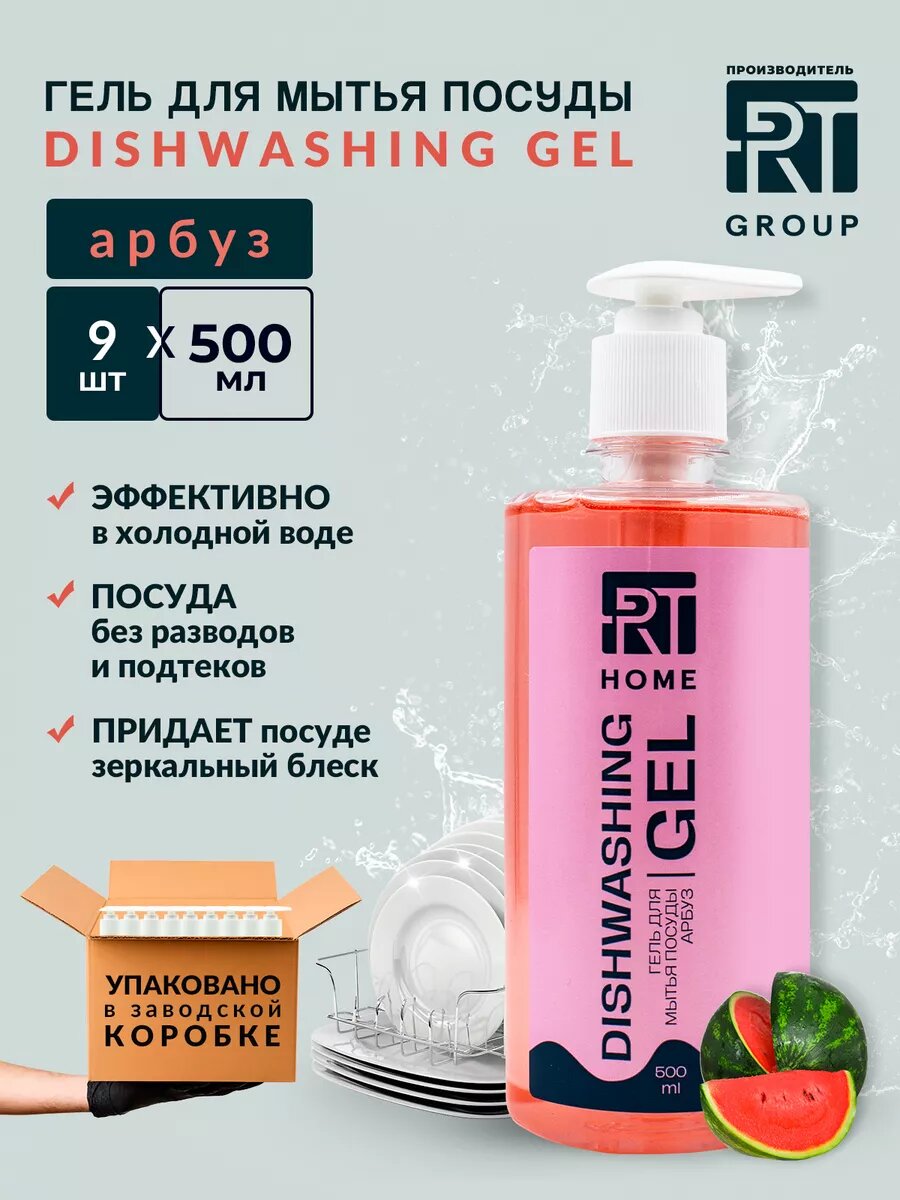 RT HOME Гель для мытья посуды с дозатором Арбуз 500мл/9шт интересное: