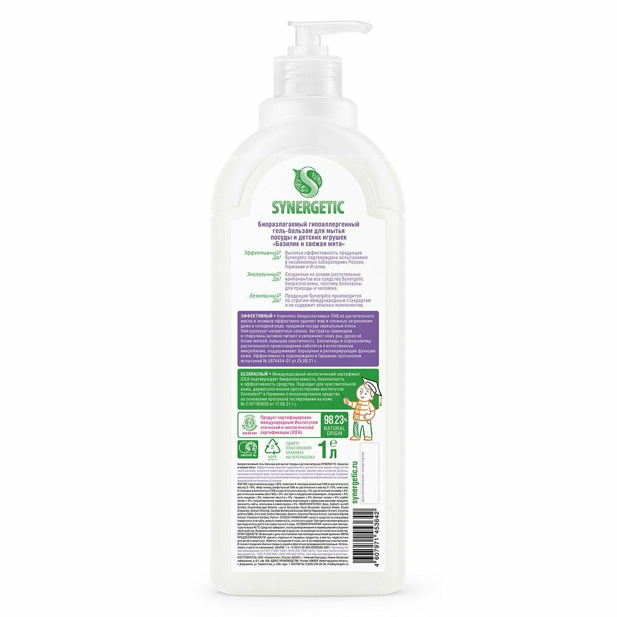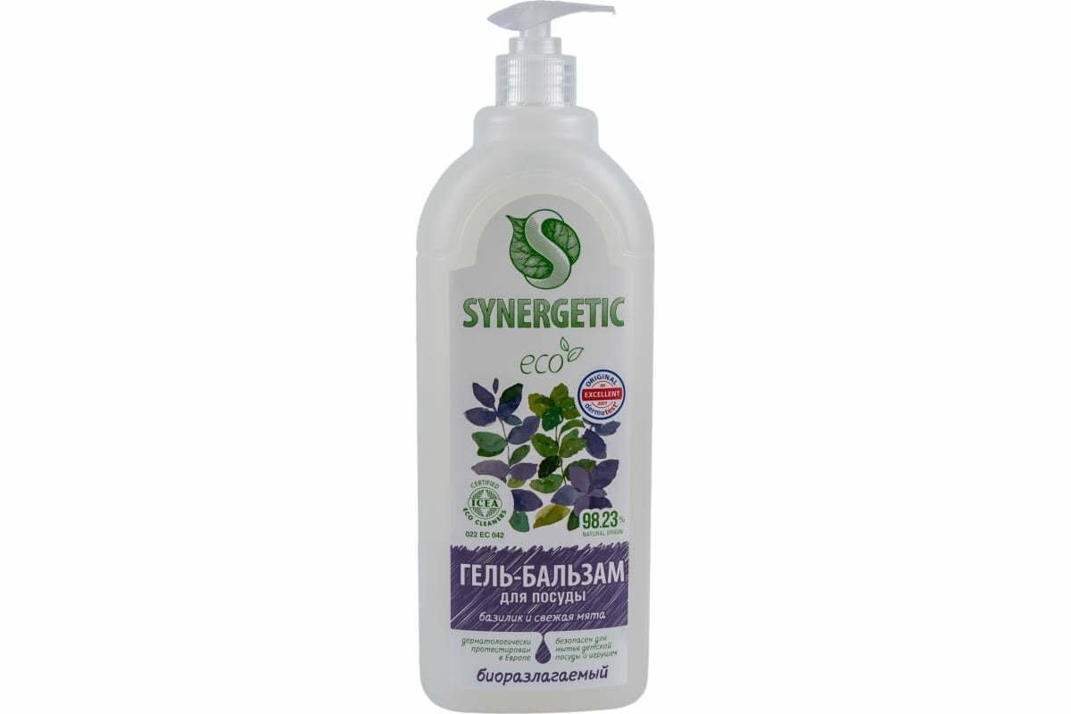 Гель-бальзам для мытья посуды Synergetic Базилик и свежая Мята, гипоаллергенный, 1 л интересное: