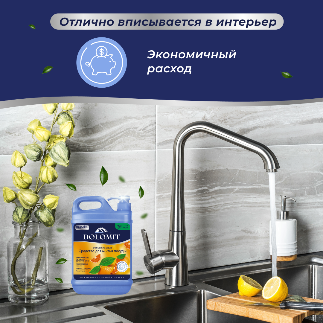 Средство для мытья посуды MARABU/МАРАБУ DOLOMIT, сочный апельсин, 1,5 л гель с дозатором интересное:
