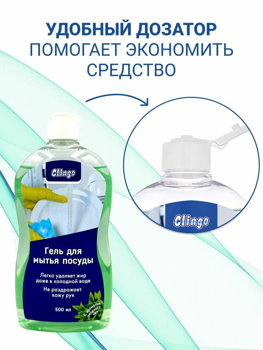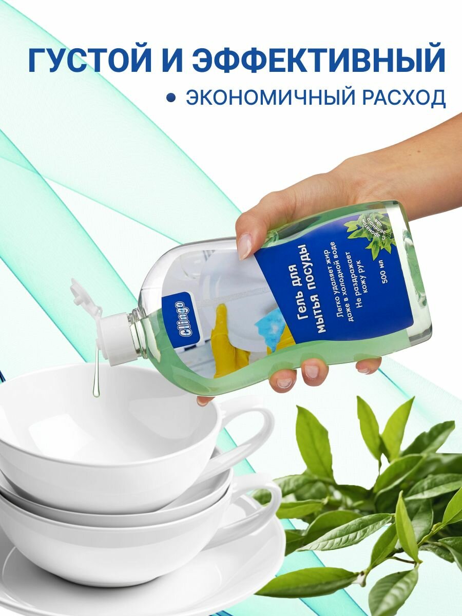 Гель для посуды Clingo с ароматом зеленого чая 500 мл, средство для мытья фруктов, овощей, детской посуды интересное: