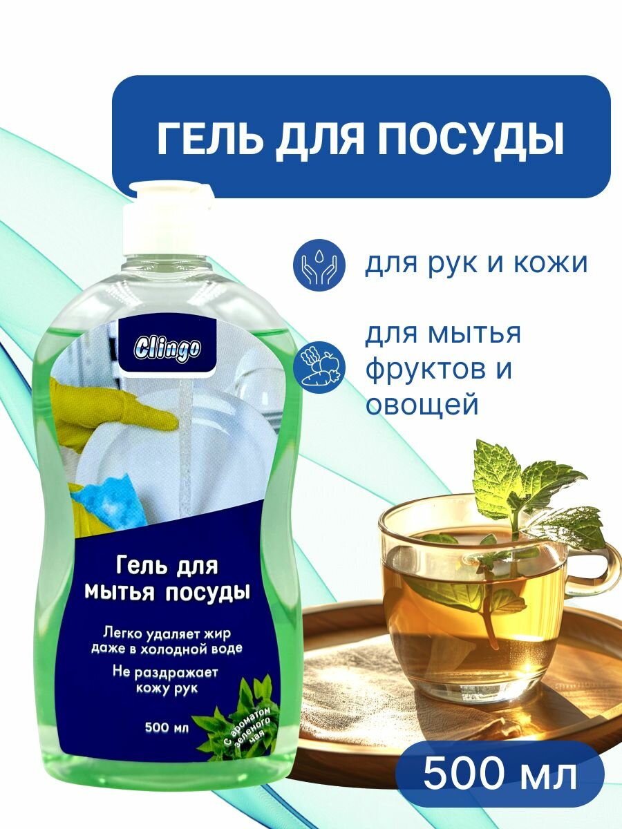 Купить Гель для посуды Clingo с ароматом зеленого чая 500 мл, средство для мытья фруктов, овощей, детской посуды