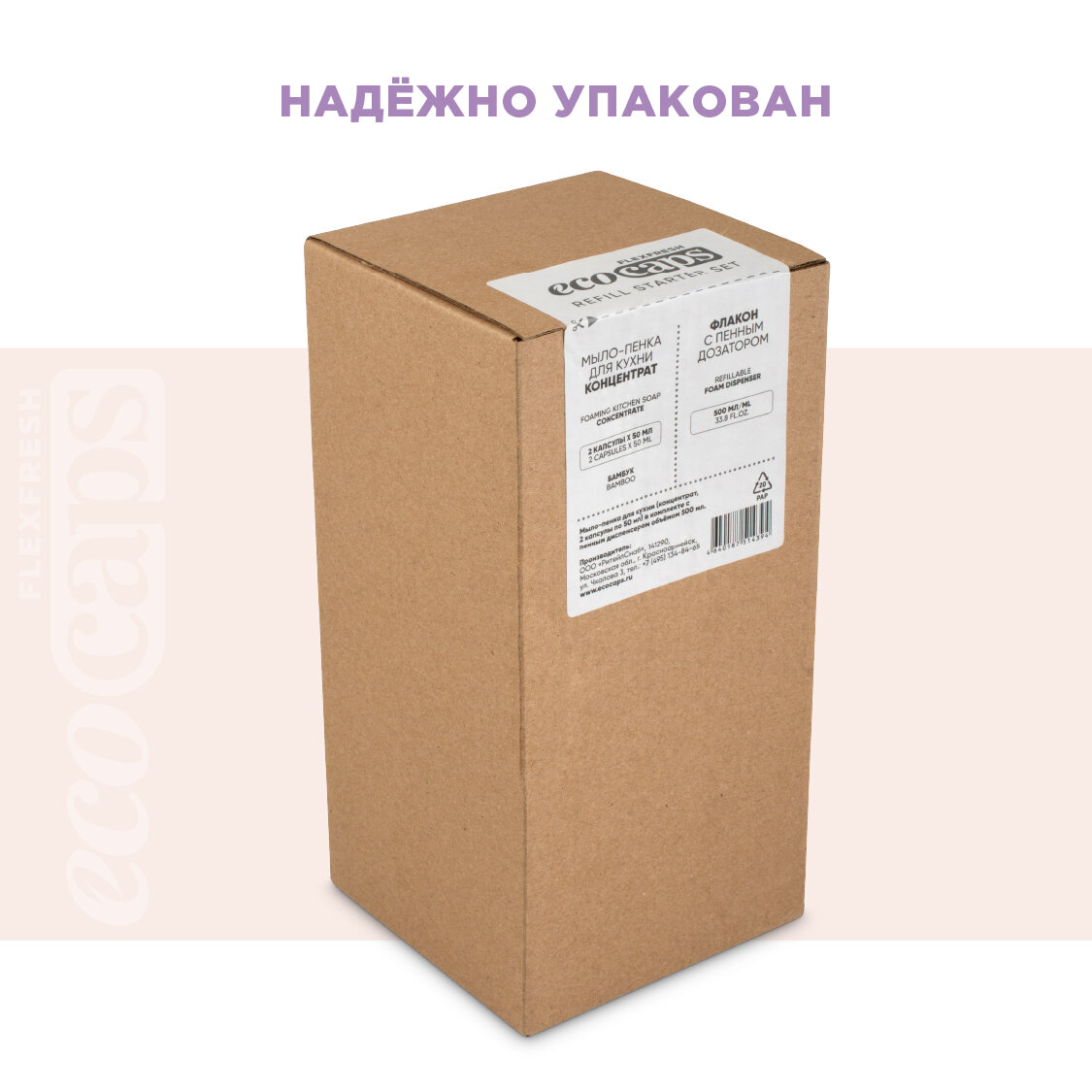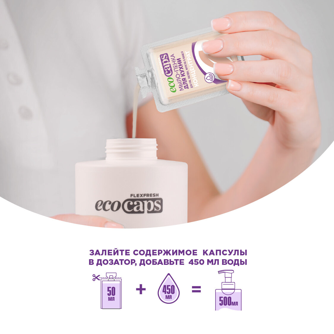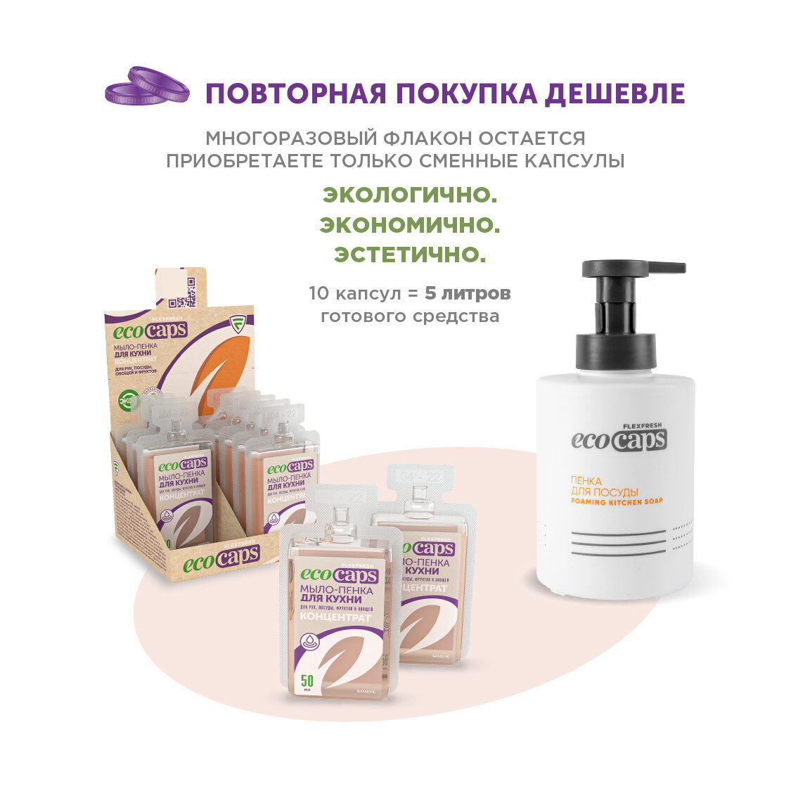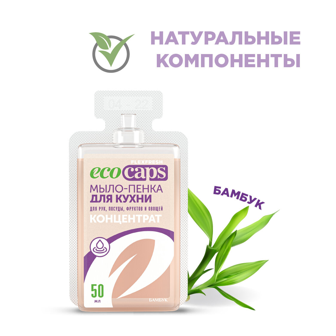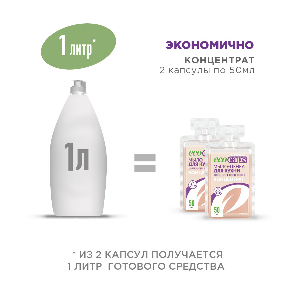 Средство для мыться посуды, мыло-пенка для кухни EcoCaps (концентрат в капсулах) 2 шт по 50 мл, аромат Бамбук, флакон 500 мл в комплекте интересное: