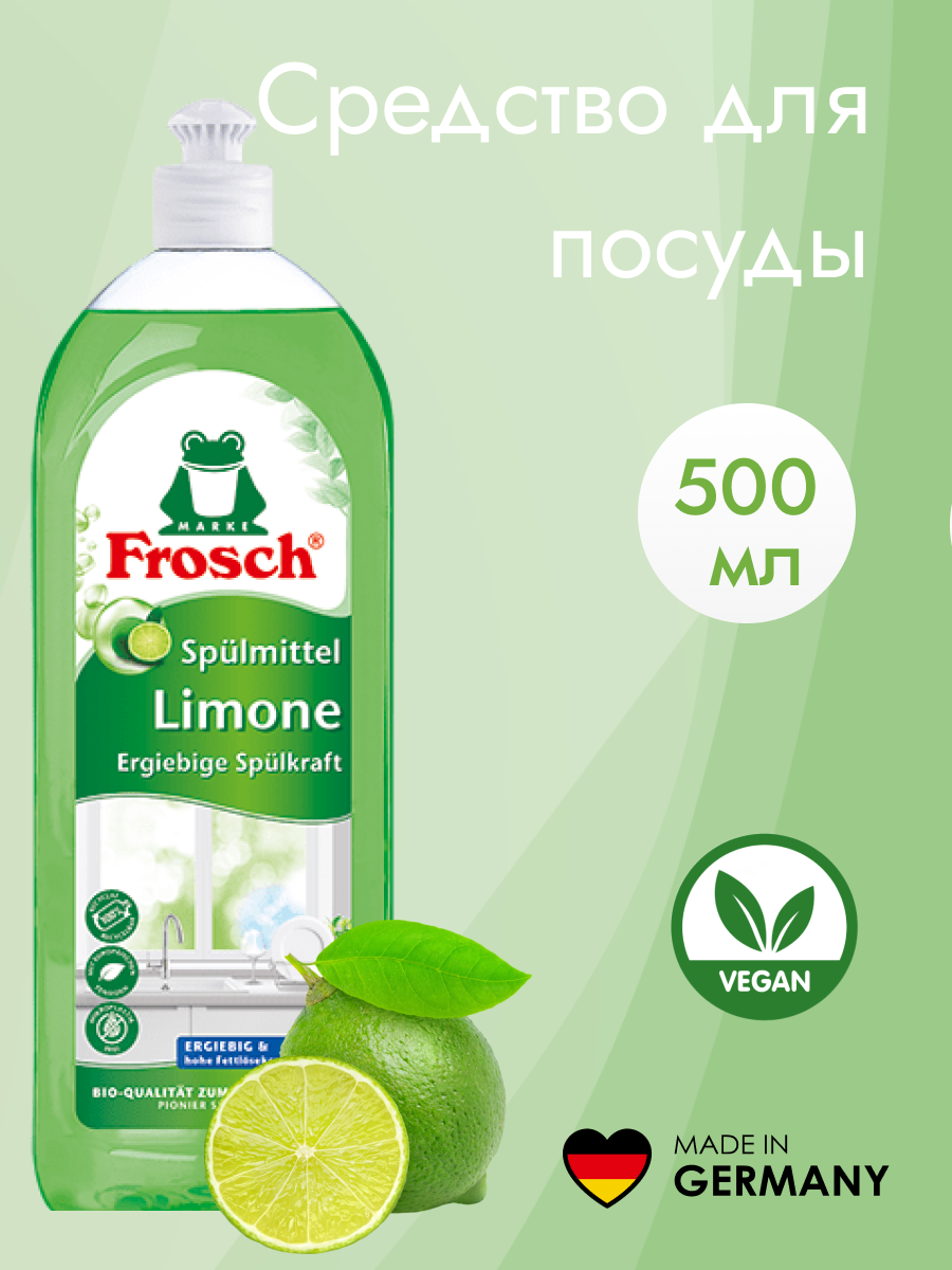 Средство для мытья Frosch Зеленый лимон, биоразлагаемый, гипоаллергенный, 1л интересное: