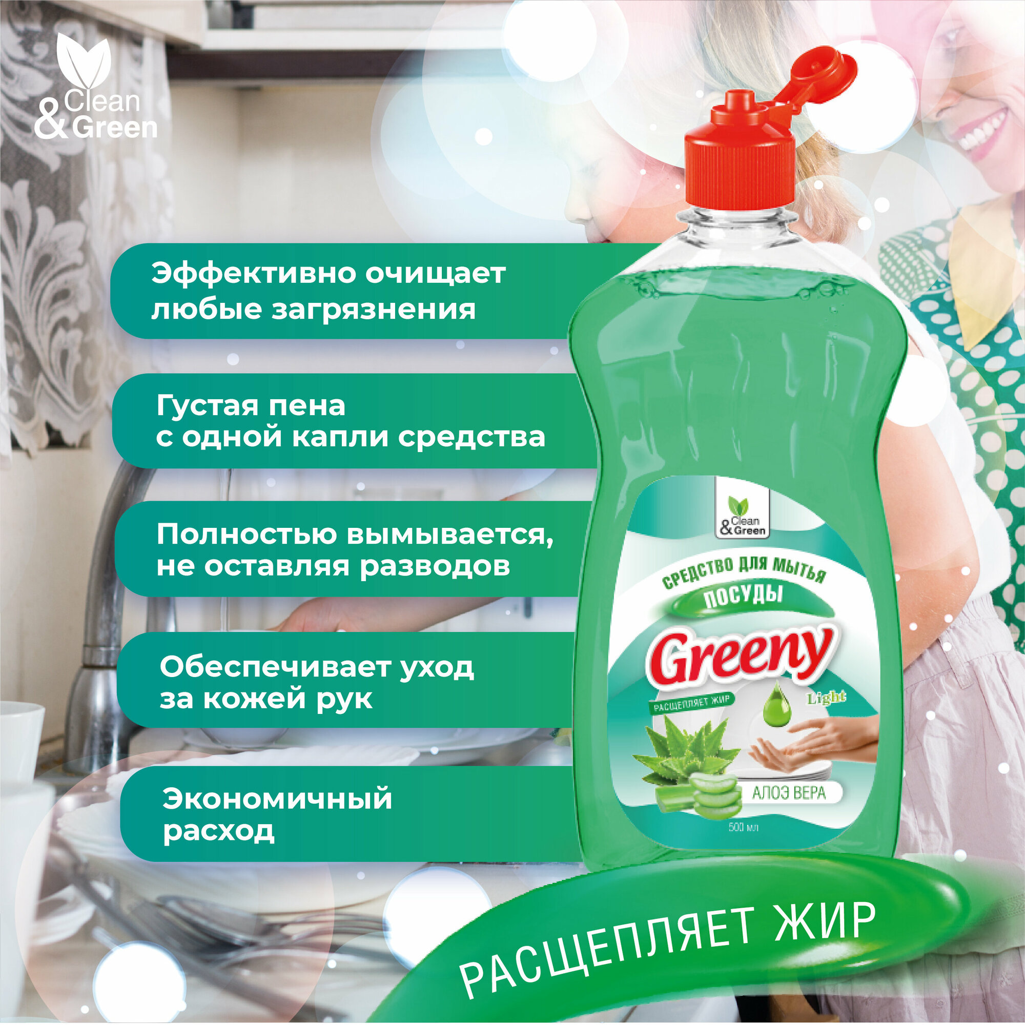 Купить Средство для мытья посуды Greeny Light 500 мл Алоэ вера Clean&Green CG8153