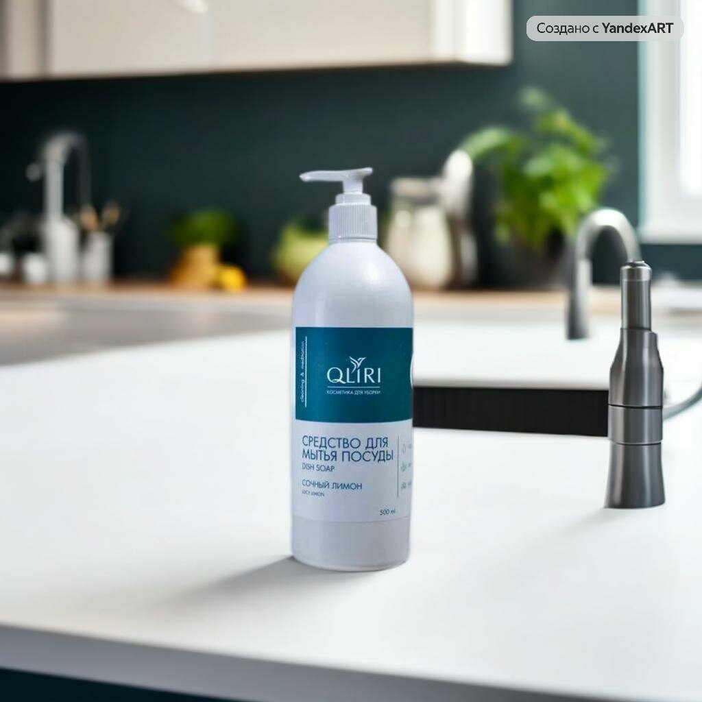 Средство для мытья посуды Qliri "Сочный ЛИМОН", НАБОР 4 шт. по 500 мл, с дозатором, Россия