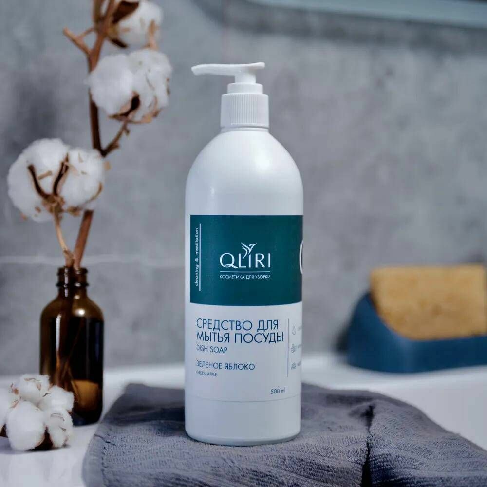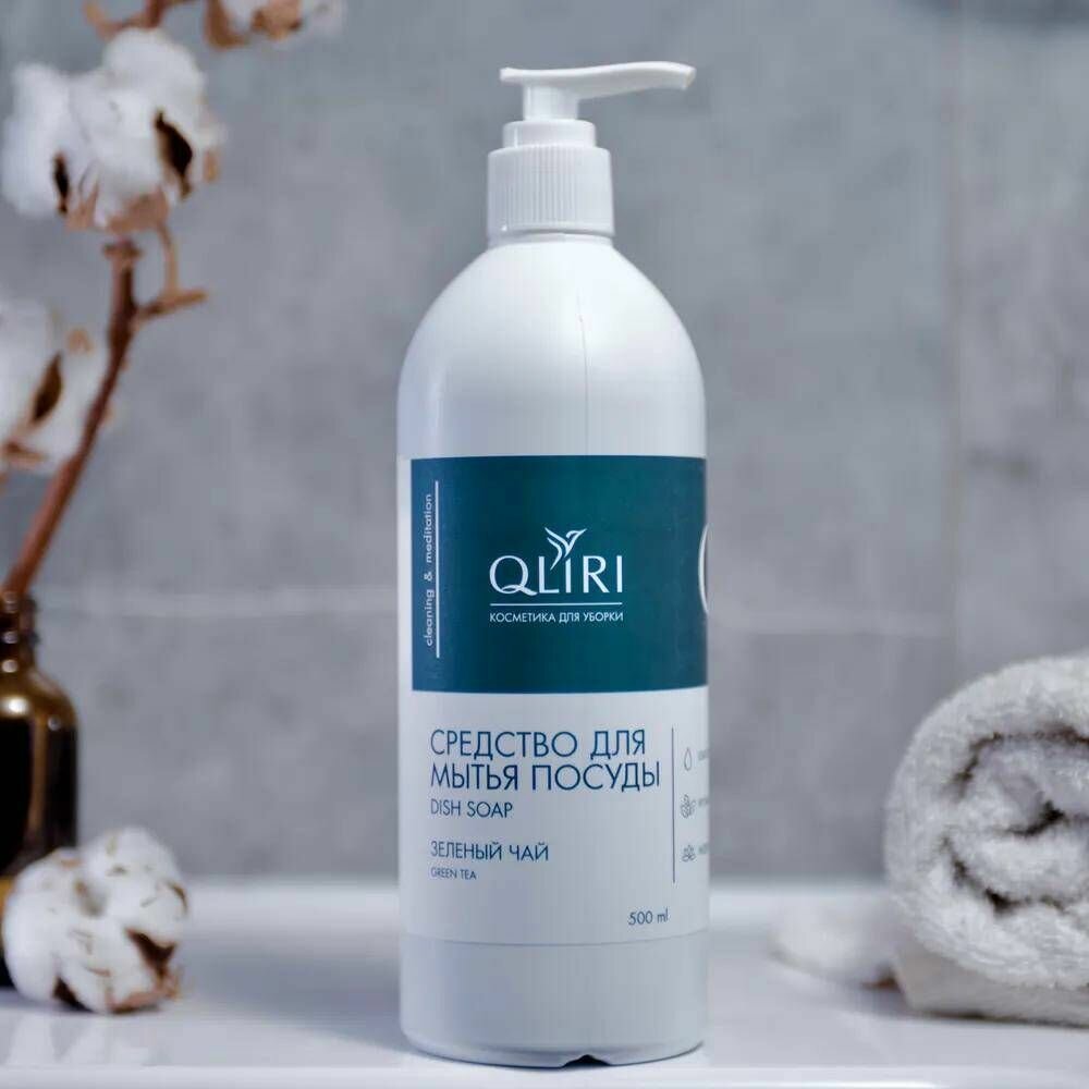 Самое лучшее! НАБОР 2 ШТ! Средство для мытья посуды Зеленый Чай QLIRI 500 мл с дозатором гель
